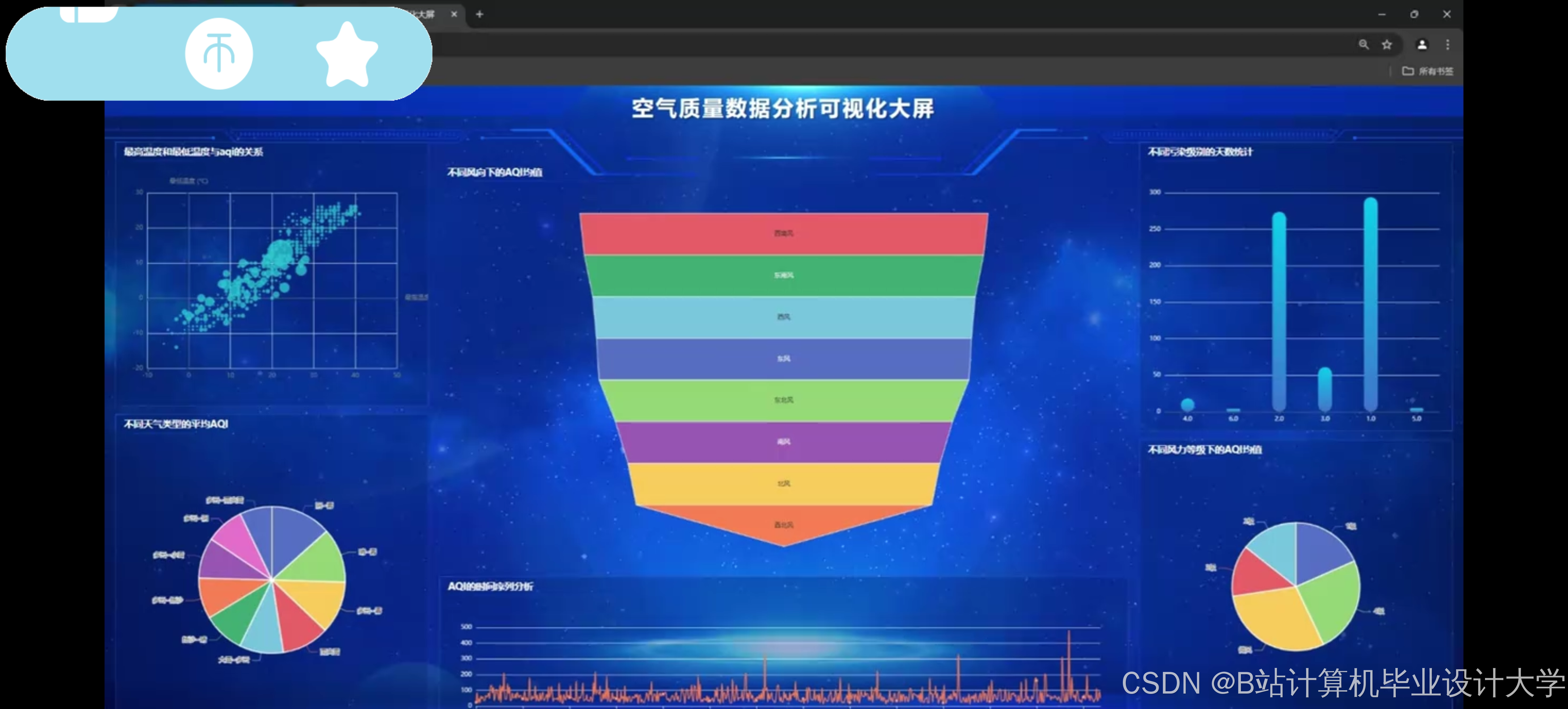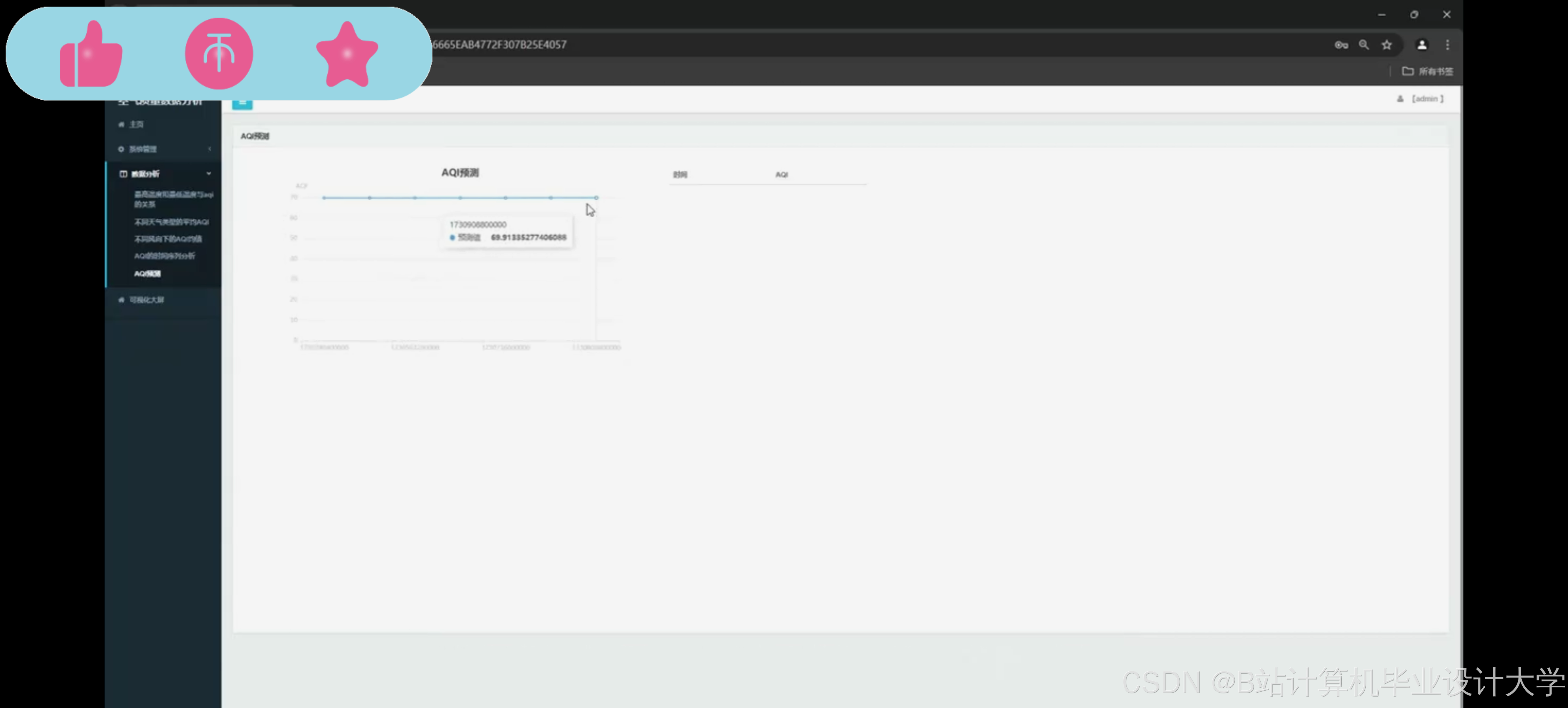 - 可视化展示:提供了可视化展示功能,使得用户能够直观地了解空气质量状况和趋势,为环境保护部门提供决策支持。