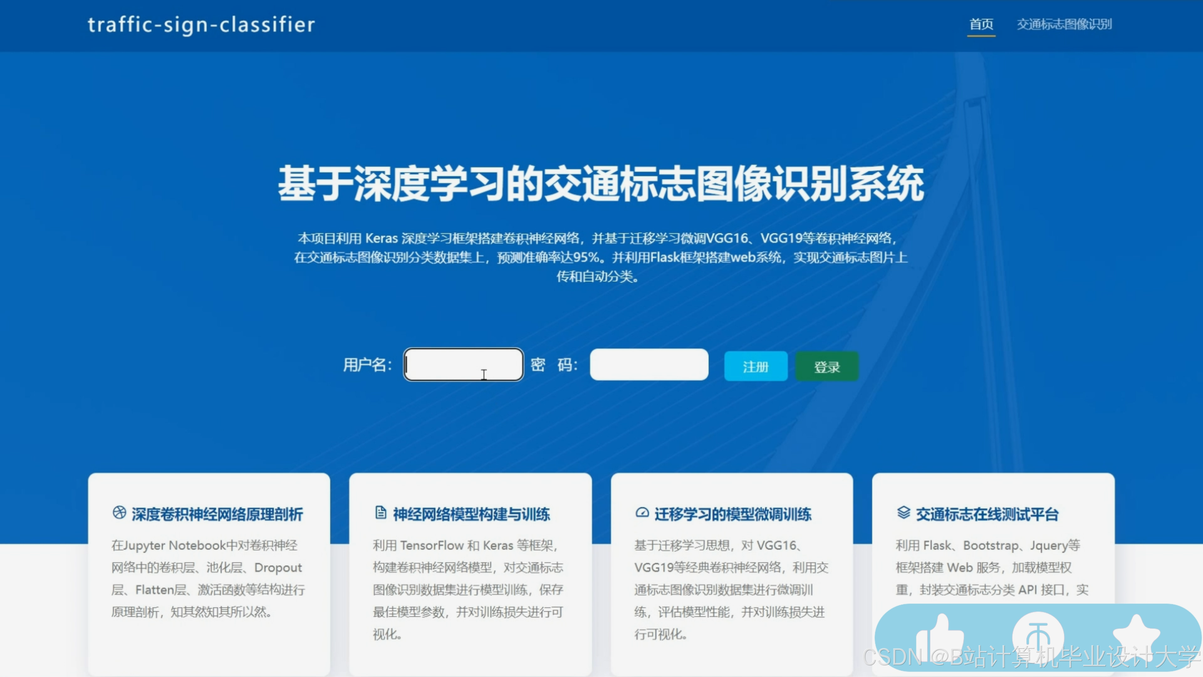 详细探讨了一基于深度学习的交通标志图像识别系统。采用TensorFlow和Keras框架,利用卷积神经网络(CNN)进行模型训练和预测,并引入VGG16迁移学习模型,取得96%的高准确率。通过搭建Web系统,用户能上传交通标志图片,系统实现了自动实时的交通标志分类识别。该系统不仅展示了深度学习在交通领域的实际应用,同时为用户提供了一种高效、准确的交通标志识别服务。