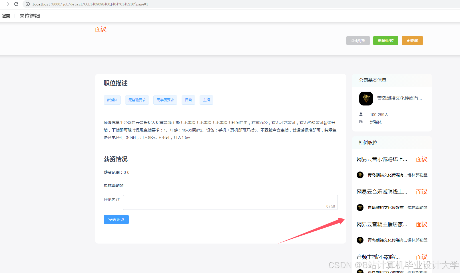 - 招聘推荐算法实现:基于协同过滤、内容推荐等算法,实现个性化的职位推荐功能,提高招聘匹配度。