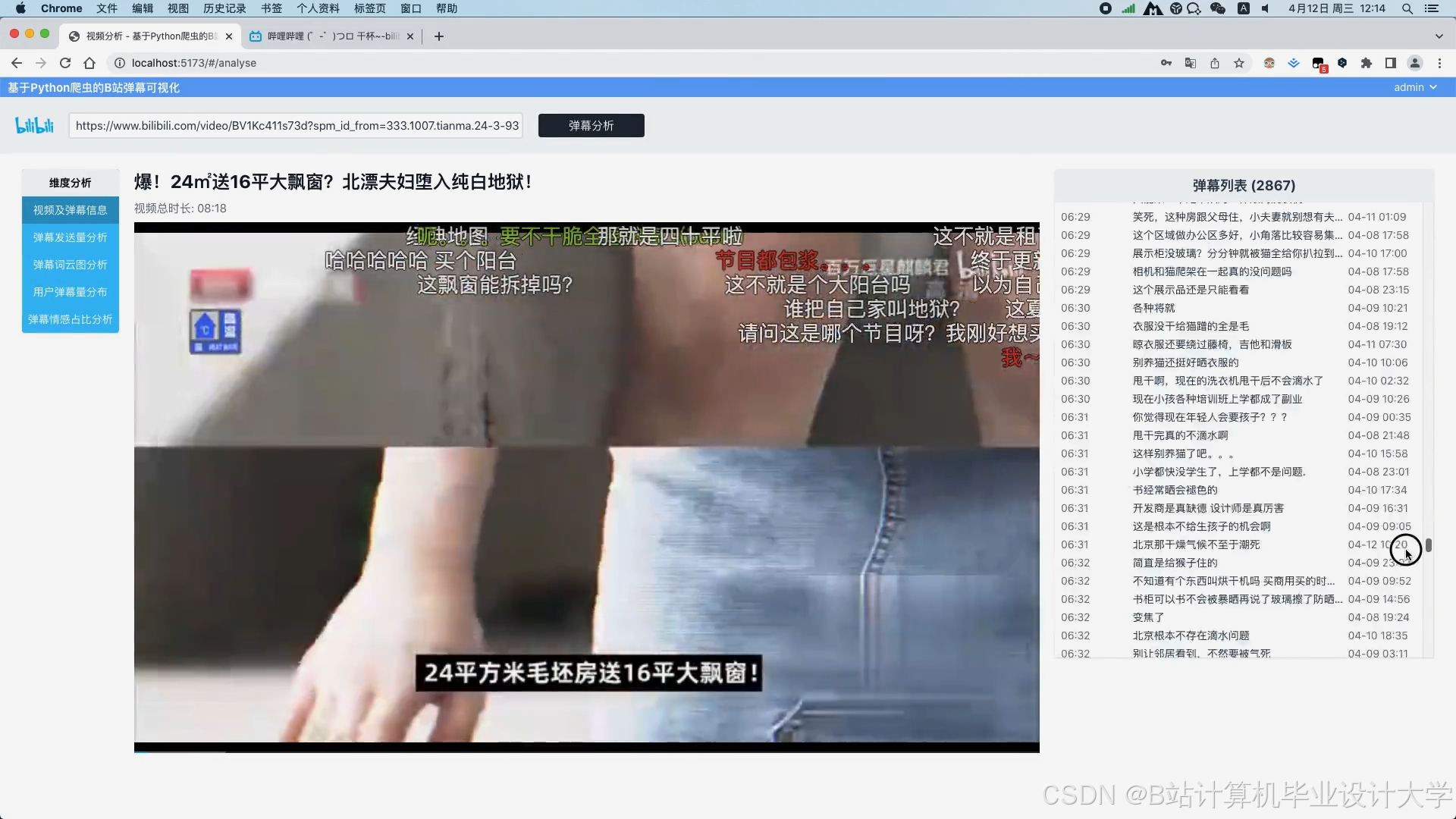 - 弹幕数据采集与预处理:研究如何从弹幕视频中实时采集弹幕数据,并进行数据清洗、分词、去停用词等预处理工作。
