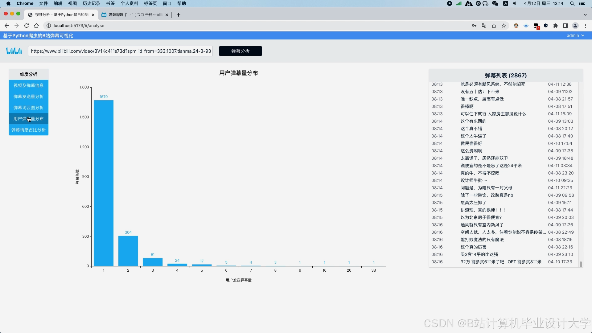 - 实现了弹幕情感分析结果的可视化展示,为用户提供直观的分析结果和更好的用户体验。