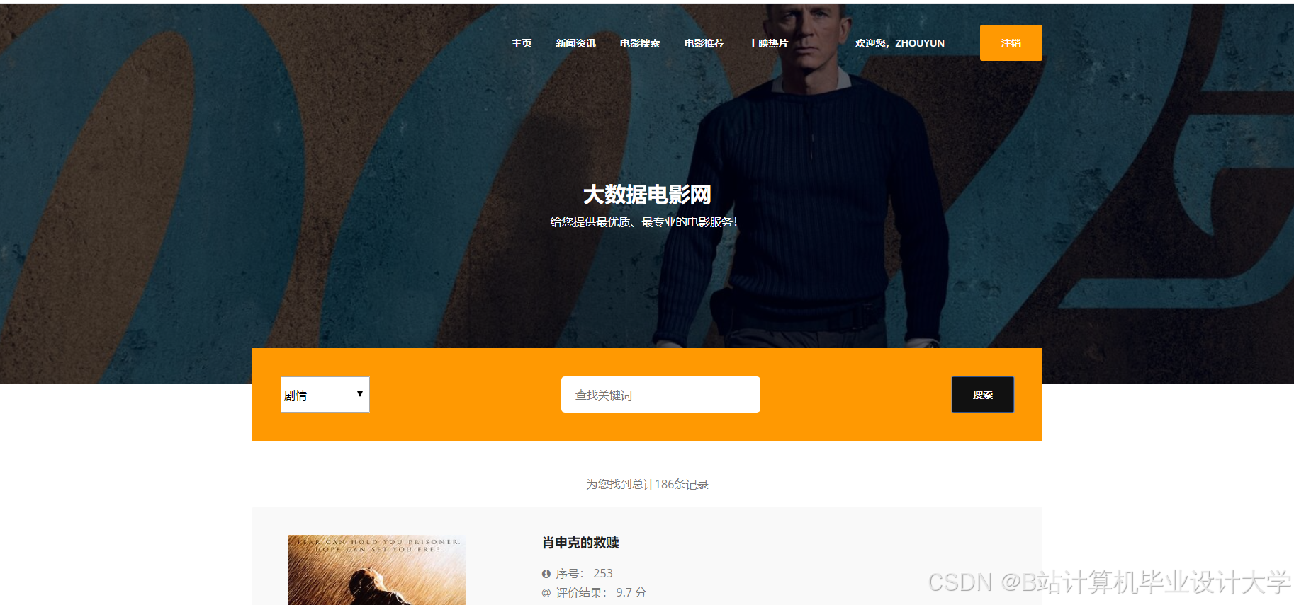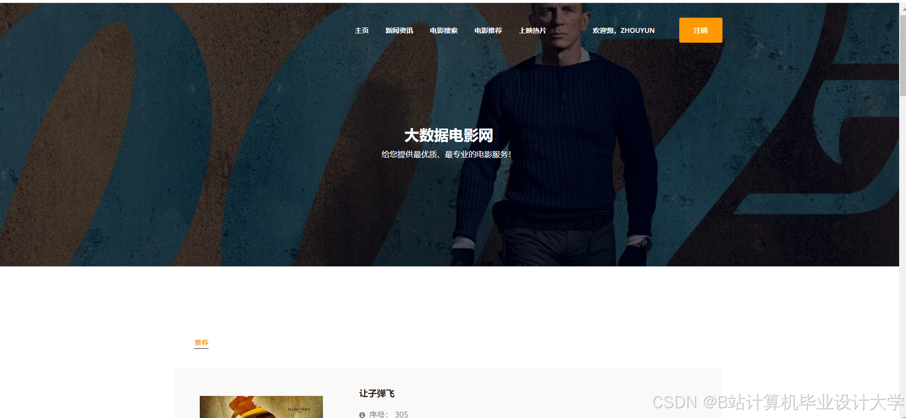 电影推荐系统通过分析用户的兴趣和行为,为用户提供个性化的电影推荐,有助于提高用户的观影体验,同时也有利于电影平台提高用户粘性和增加收入。本研究旨在结合Springboot后端框架和Vue.js前端技术,设计并实现一个电影推荐系统,以解决用户在海量电影中难以抉择的问题,为用户提供更加精准、个性化的电影推荐服务。