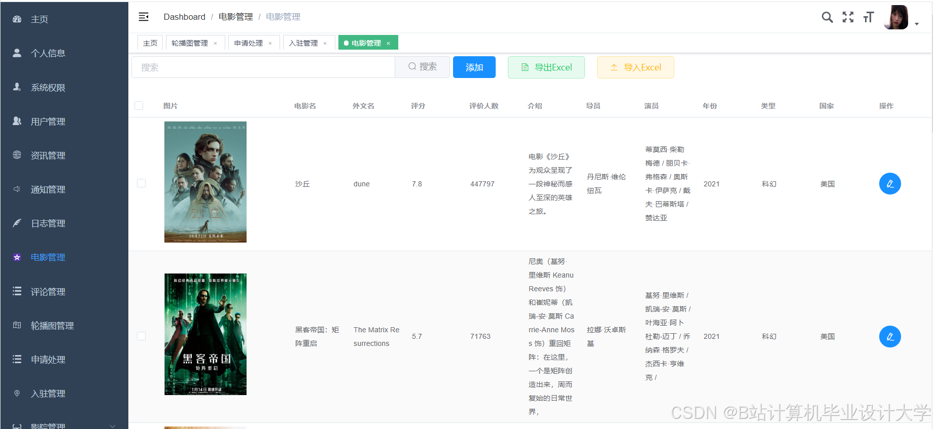 - 电影信息管理模块:收集和整理电影的基本信息,构建电影特征库,为推荐算法提供数据支持。