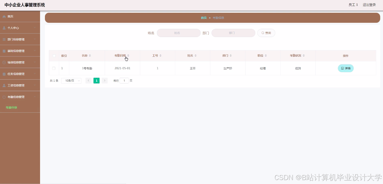 关键词:中小企业人事管理系统,springboot框架 Mysql数据库 Java技术