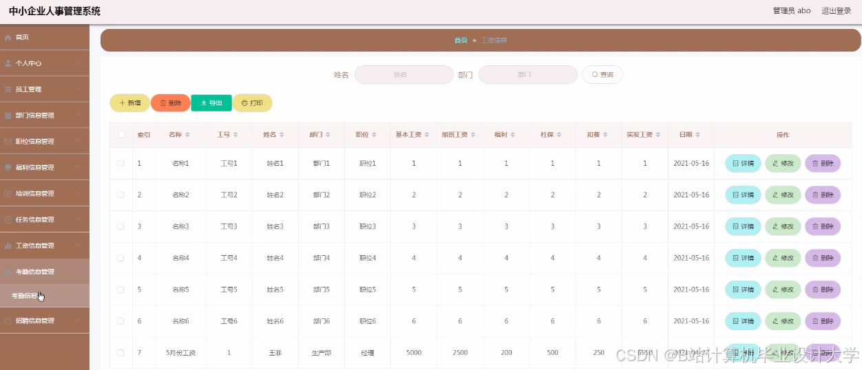 本中小企业人事管理系统采用的数据库是Mysql,使用springboot框架开发。在设计过程中,充分保证了系统代码的良好可读性、实用性、易扩展性、通用性、便于后期维护、操作方便以及页面简洁等特点。