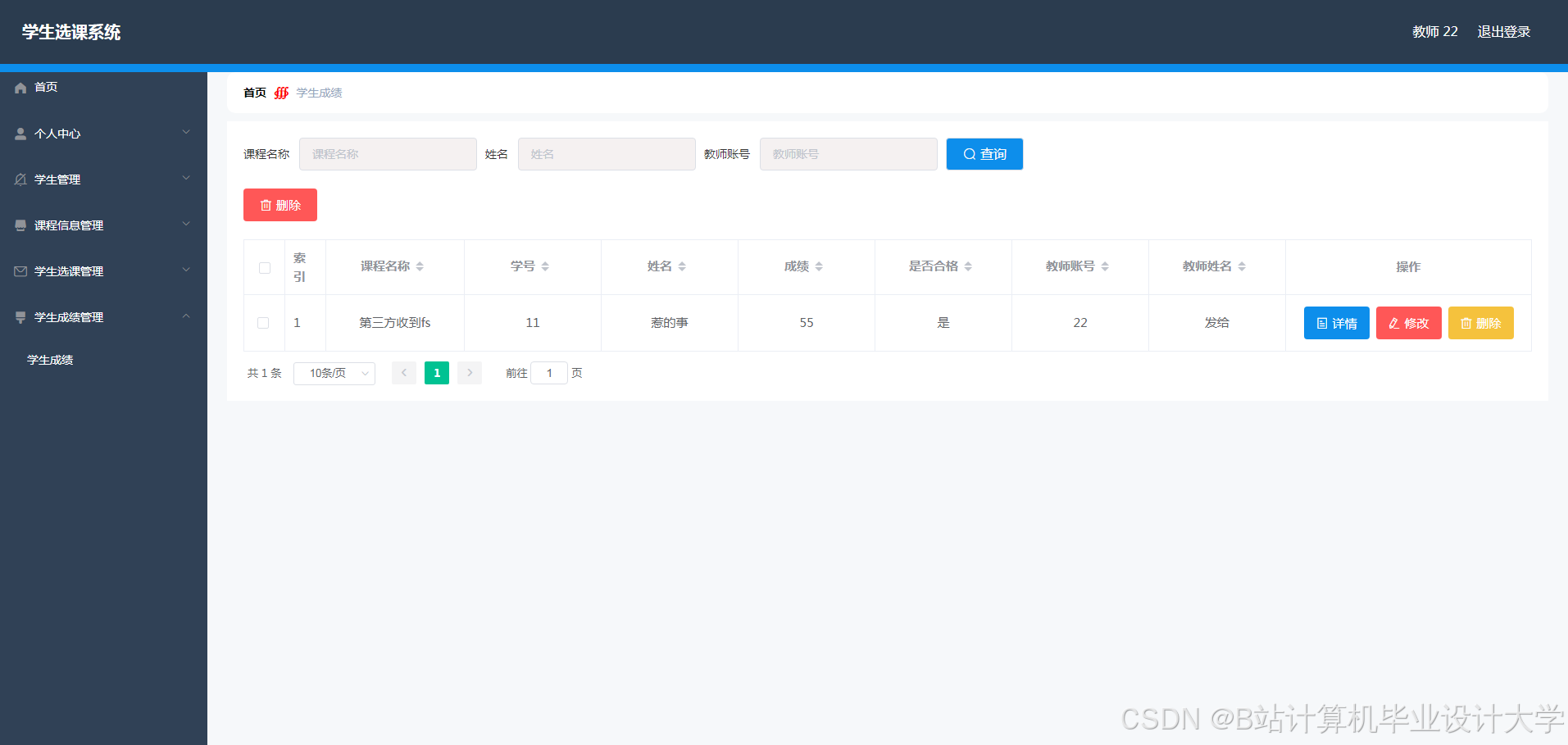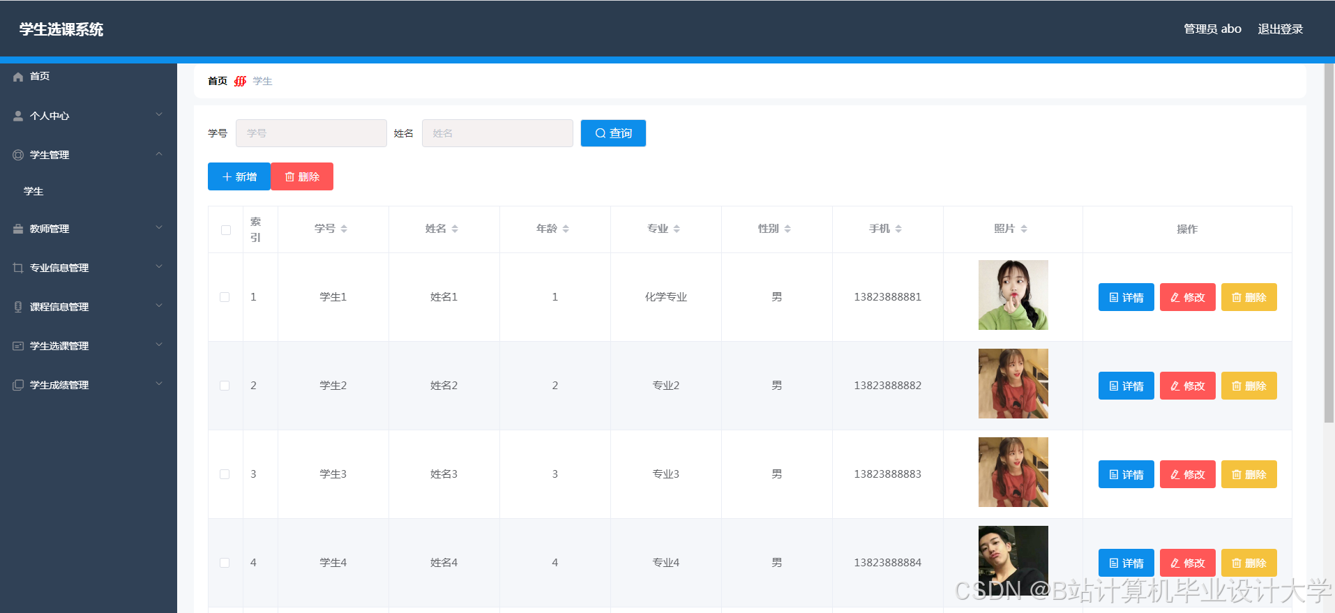 In short, the student course selection system centralized management information has many advantages such as strong confidentiality, high efficiency, large storage space, and low cost. It can reduce the cost of information management and realize the computerization of information management.
