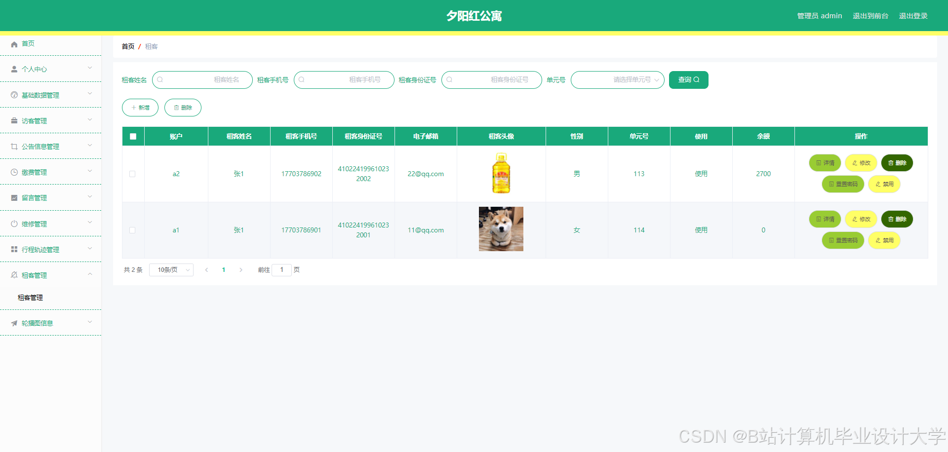 The sunset red apartment management system can realize the functions of visitor management, tenant management, maintenance management, payment management, itinerary management, message management and other functions. The system uses Mysql database, Java language, Spring Boot framework and other technologies for programming.