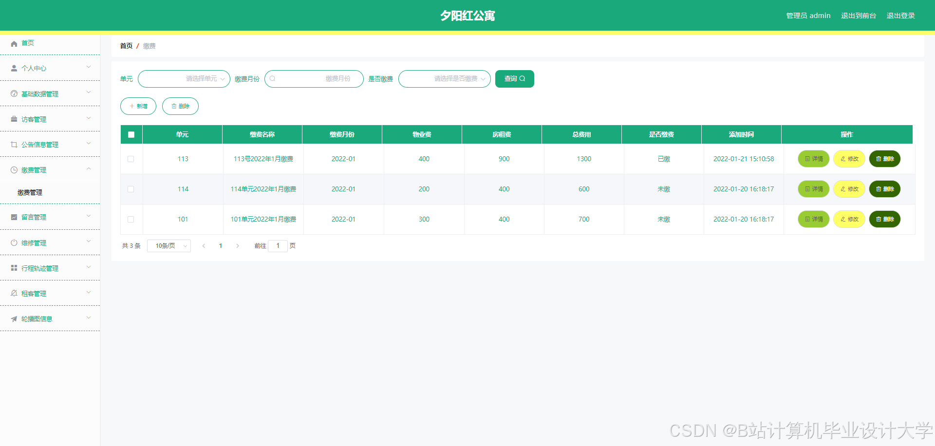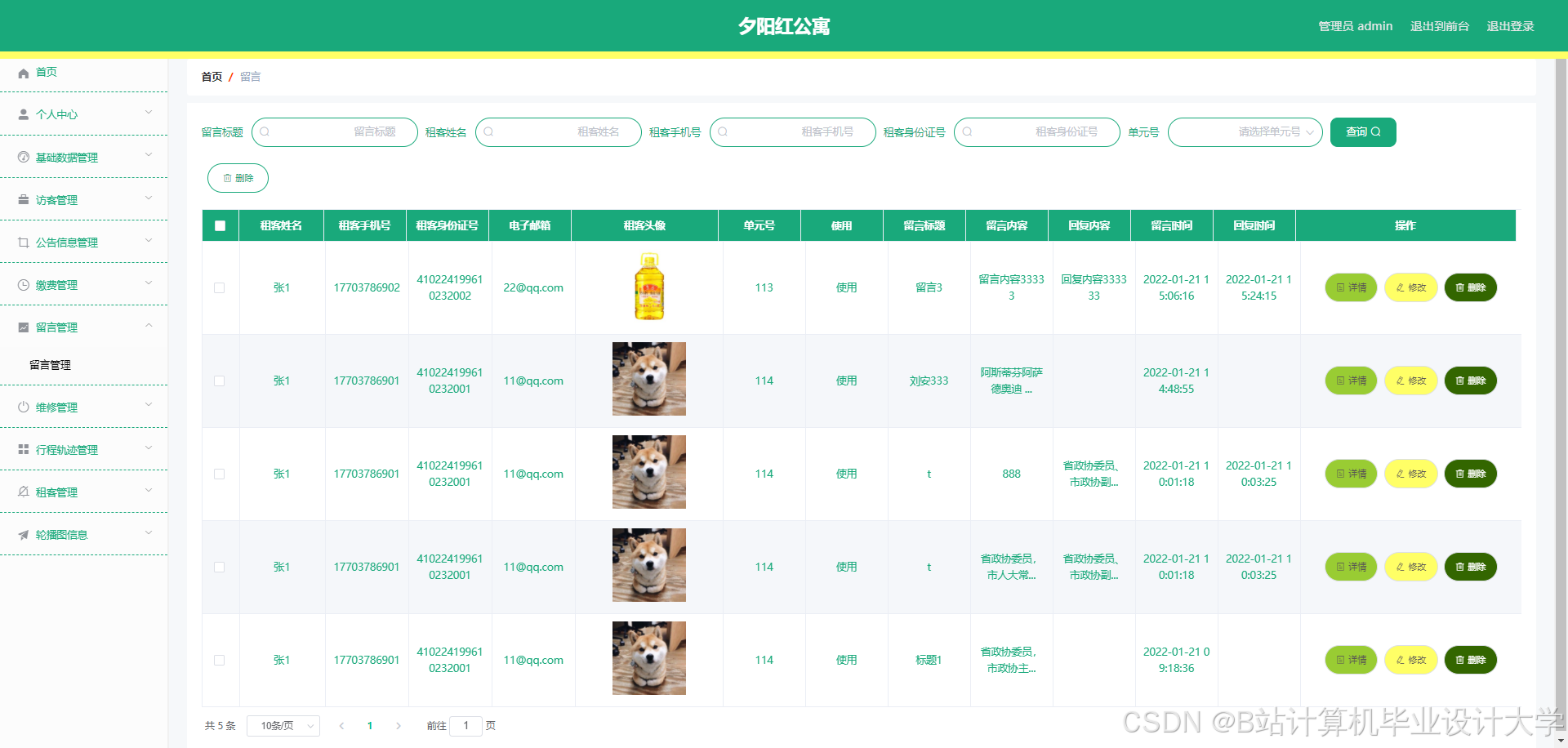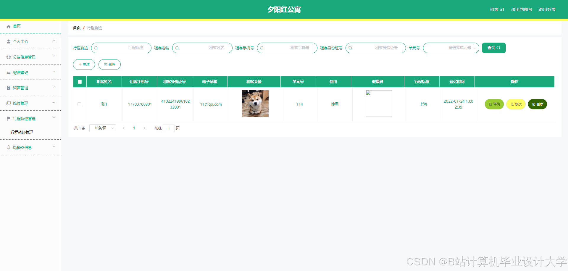 夕阳红公寓管理系统能够实现访客管理,租客管理,维修管理,缴费管理,行程轨迹管理,留言管理等功能。该系统采用了Mysql数据库,Java语言,Spring Boot框架等技术进行编程实现。