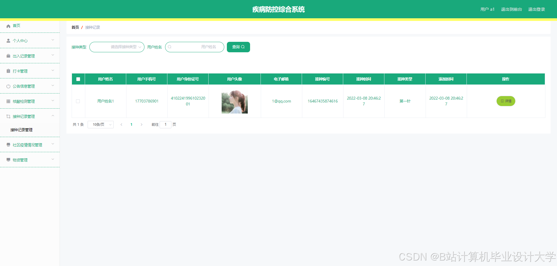 关键字:疾病防控综合系统,接种记录,核酸检测,物资申请
