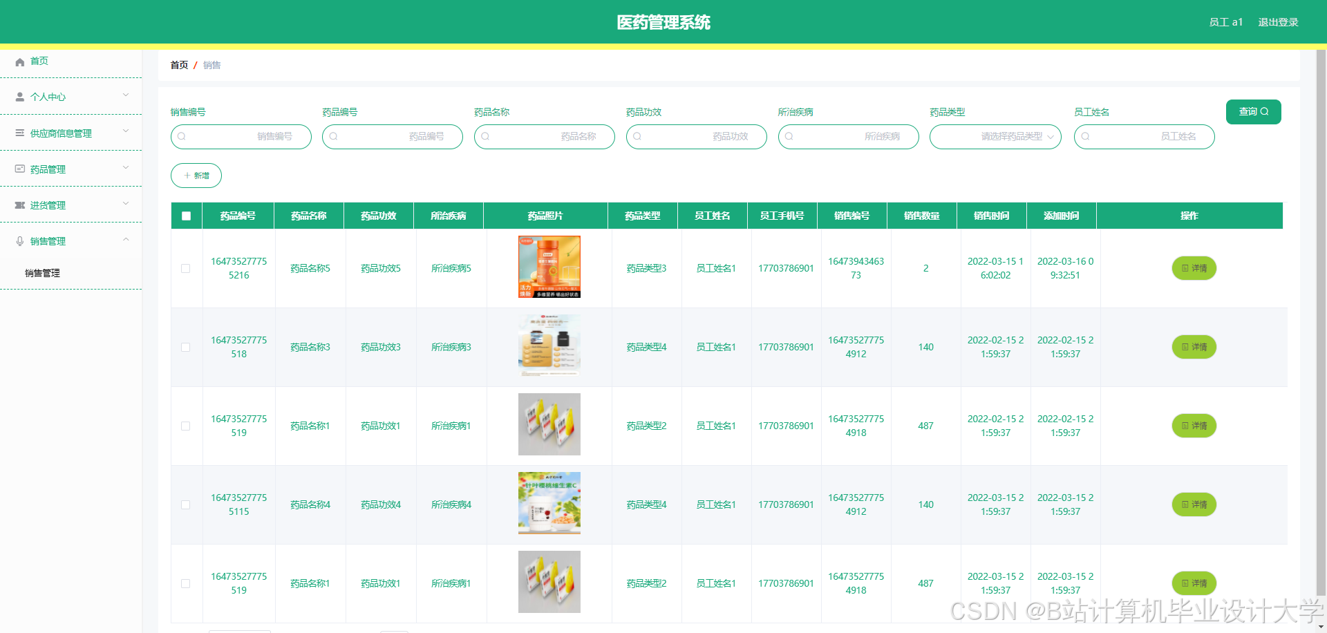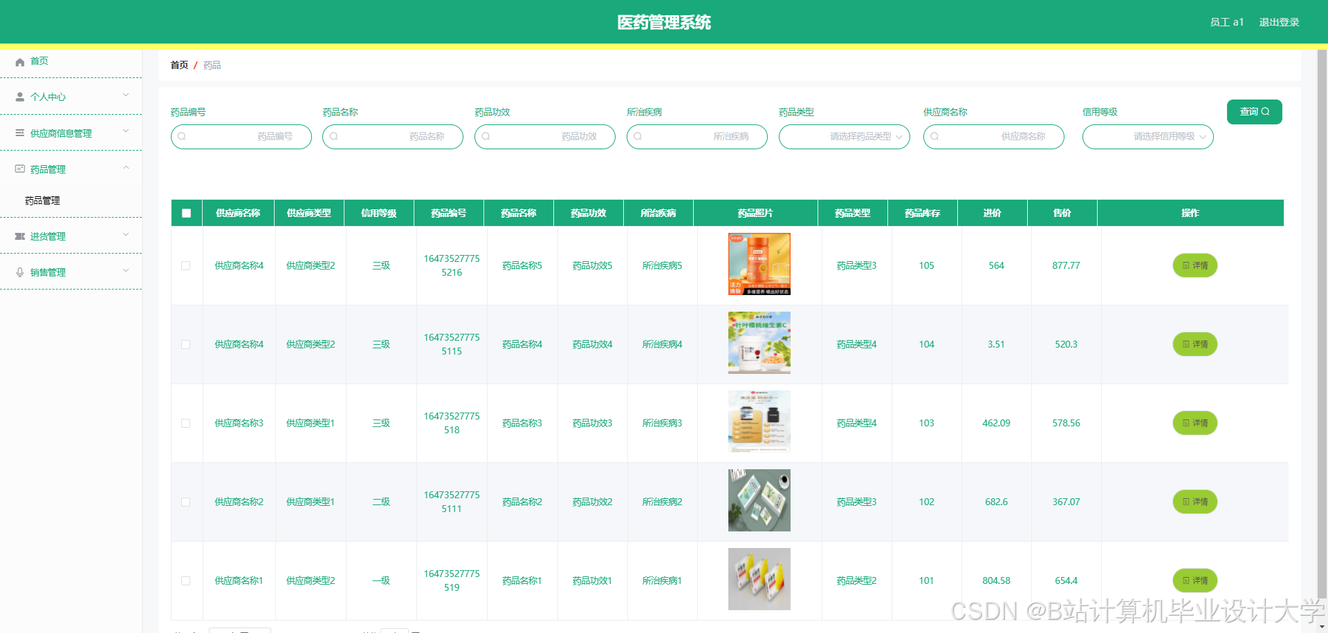 计算机网络发展到现在已经好几十年了,在理论上面已经有了很丰富的基础,并且在现实生活中也到处都在使用,可以说,经过几十年的发展,互联网技术已经把地域信息的隔阂给消除了,让整个世界都可以即时通话和联系,极大的方便了人们的生活。所以说,医药管理系统用计算机技术来进行设计,不仅在管理方面更加的系统化,操作性强,最重要的是关于数据的保存和使用都能节约大量的时间,该系统非常的好用。
