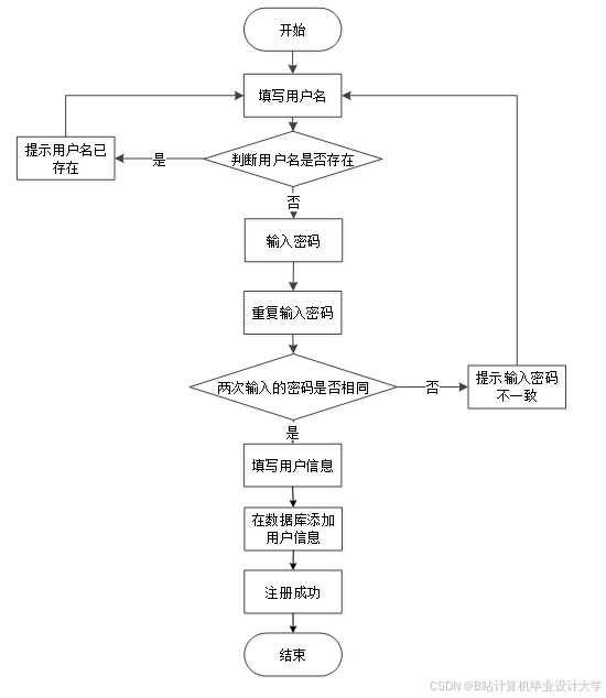 本项目在处理数据方面,必须规定其流程,要让每个步骤都要符合设定预期。注册的结果可以说只有两种结果,一个是成功,一个是失败,成功就会把注册时候输入的数据写入到数据库表里存储,如果失败则提示提示失败,并且不写入数据库。因为两种结果,所以要对数据的合法性进行判断,而数据的合法性需要对每条信息进行判断,主要对哪条信息判断,这些都要有流程。