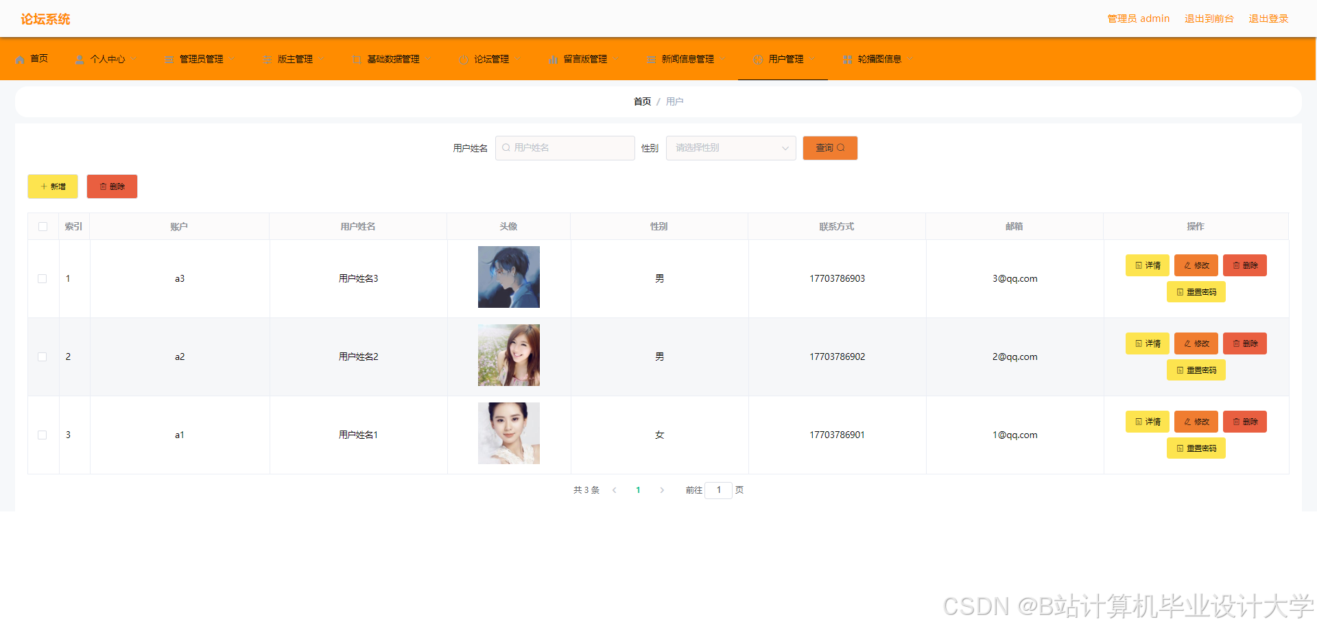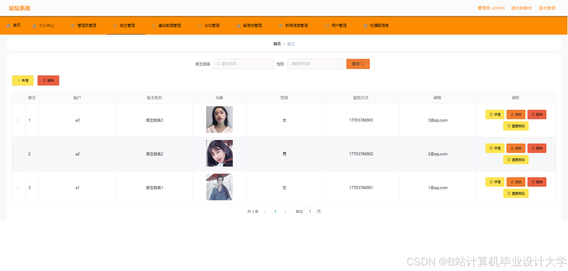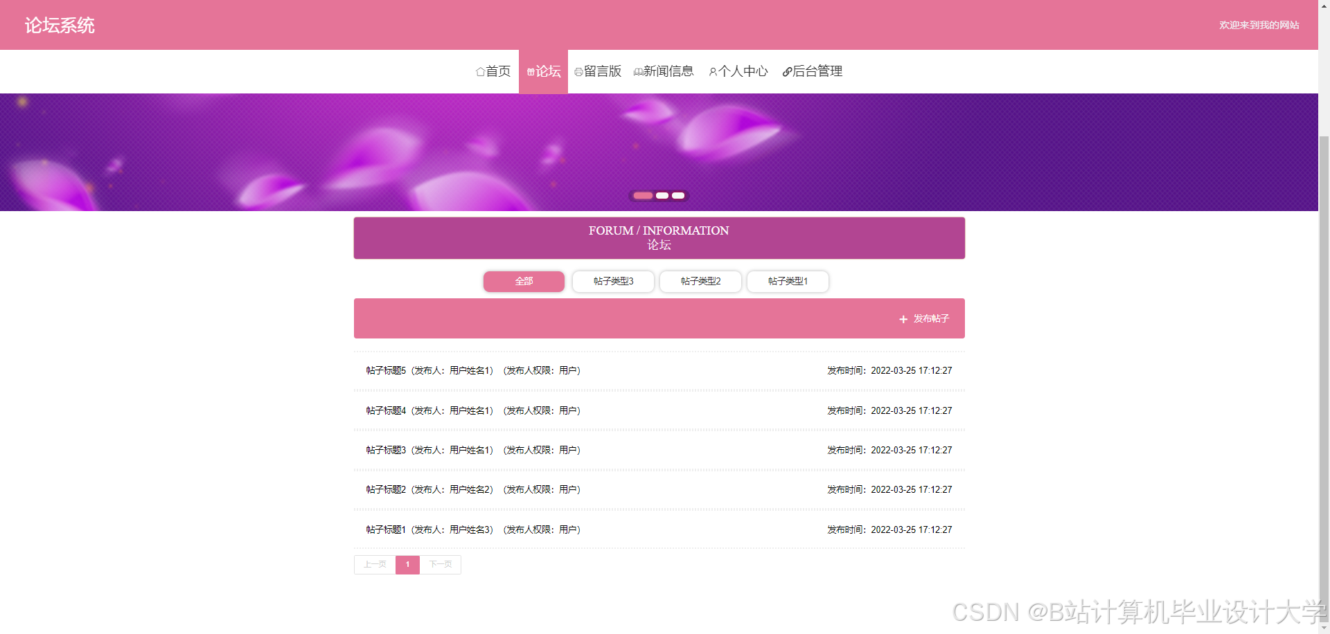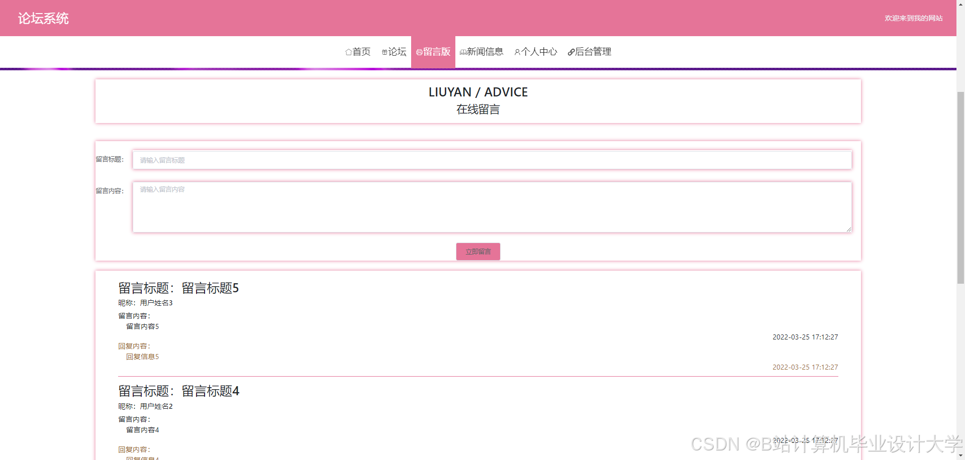 The forum system developed using Java technology this time uses computers to manage forum post information. The system can realize moderator management, news information management, forum post management, user management, message board management and other functions.
