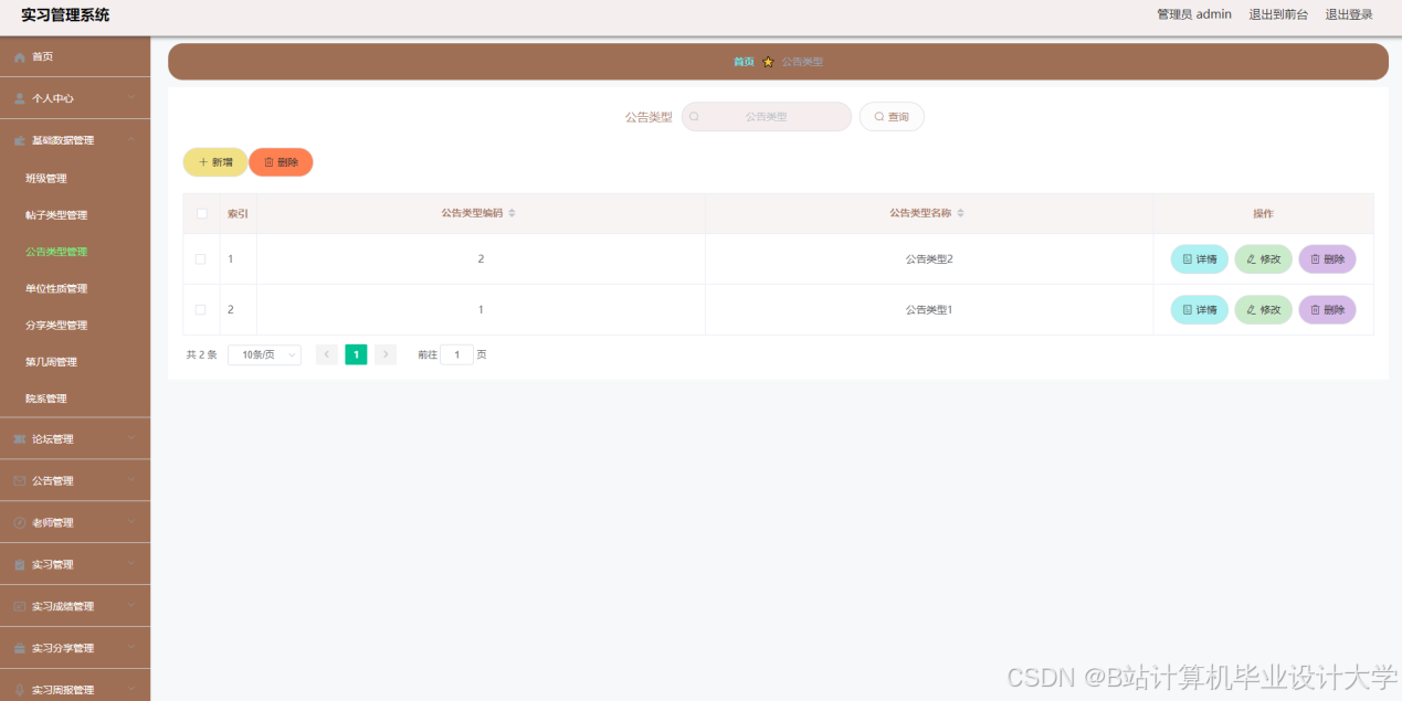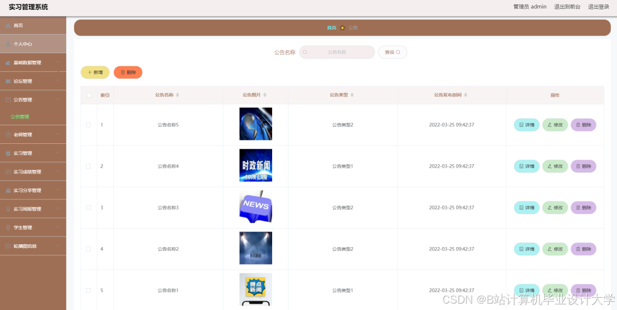 近年来,信息化管理行业的不断兴起,使得人们的日常生活越来越离不开计算机和互联网技术。首先,根据收集到的用户需求分析,对设计系统有一个初步的认识与了解,确定实习管理系统的总体功能模块。然后,详细设计系统的主要功能模块,通过数据库设计过程将相关的数据信息存储到数据库中,再通过使用关键的开发工具,如IDEA开发平台、AJAX技术等,编码设计相关的功能模块。接着,主要采用功能测试的方式对系统进行测试,找出系统在运行过程中存在的问题,以及解决问题的方法,不断地改进和完善系统的设计。最后,总结本文介绍的系统的设计和实现过程,并且针对于系统的开发提出未来的展望工作。本系统的研发具有重大的意义,在安全性方面,用户使用浏览器访问网站时,采用注册和密码等相关的保护措施,提高系统的可靠性,维护用户的个人信息和财产的安全。在方便性方面,促进了实习管理系统的信息化建设,极大的方便了相关的工作人员对实习管理系统信息进行管理。