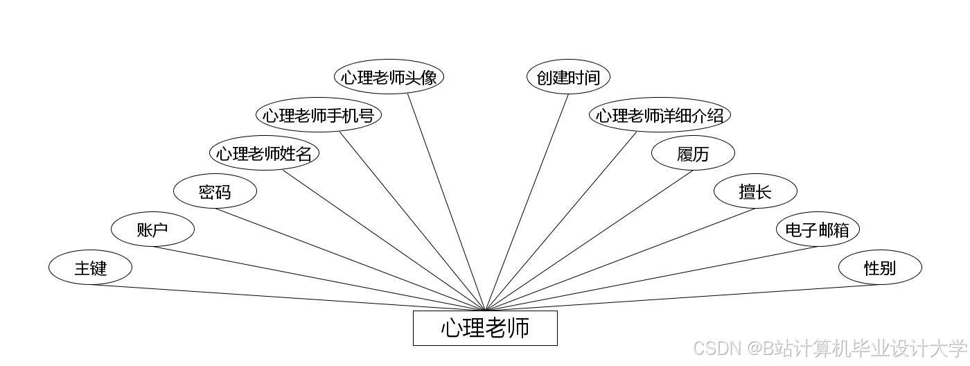 第四章:这个章节主要绘制出了系统功能架构,让我们更直观了解大学生心理健康管理系统的功能,对后台数据库表进行了设计,还画出了对应的E-R图。