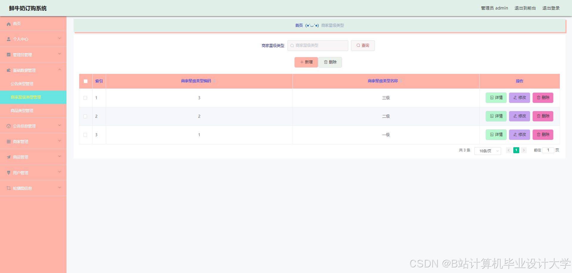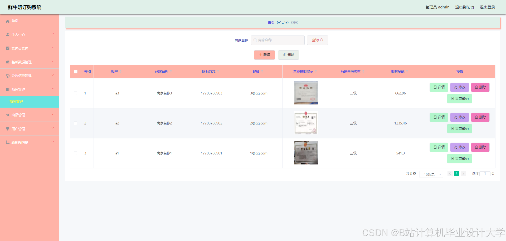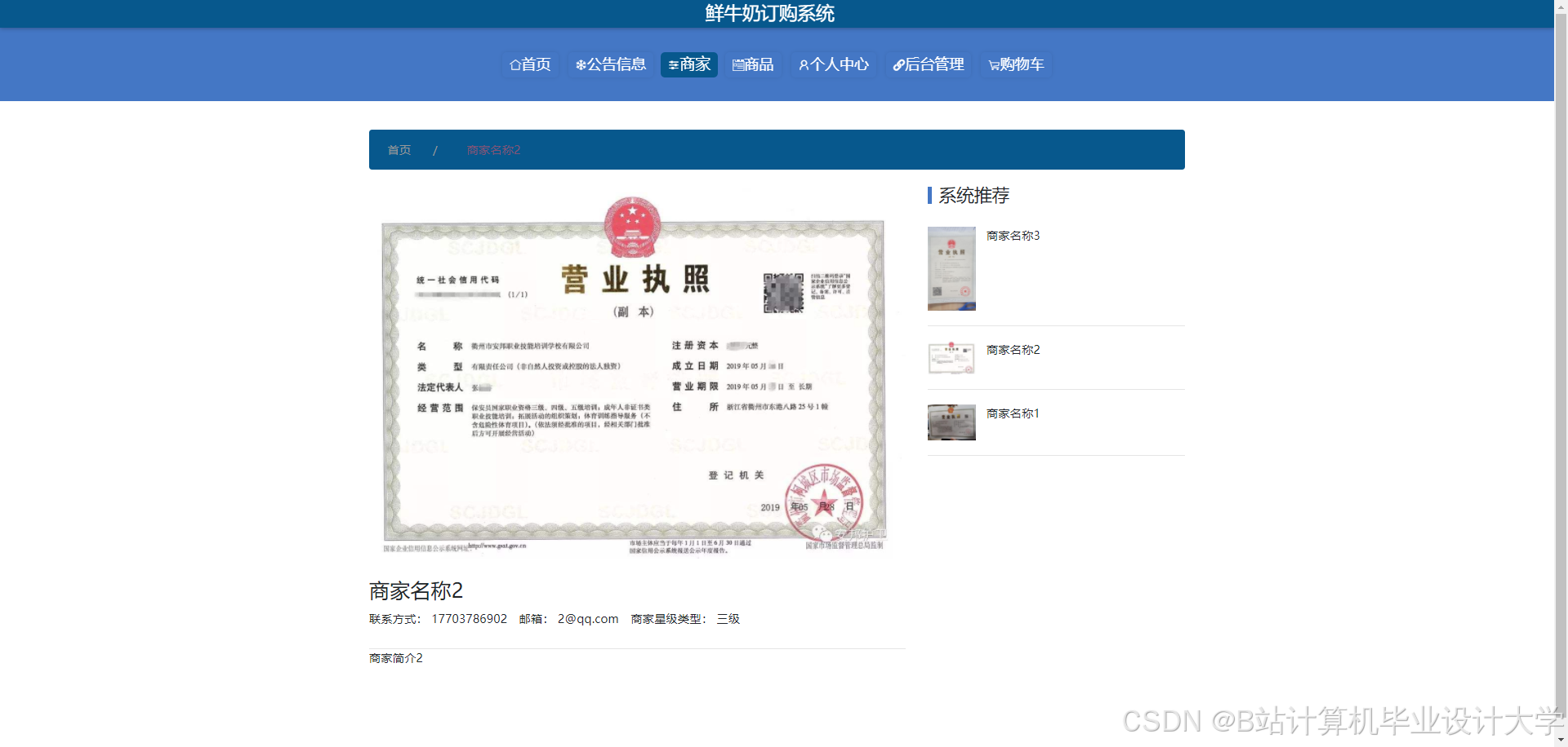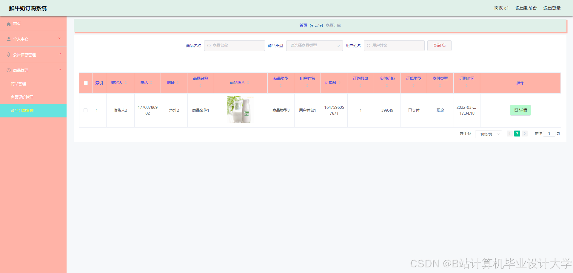 鲜牛奶订购系统可以实现商家管理,商品订单管理,用户管理,商品管理,商品评价管理等功能。该系统采用了Mysql数据库,Java语言,Spring Boot框架等技术进行编程实现。