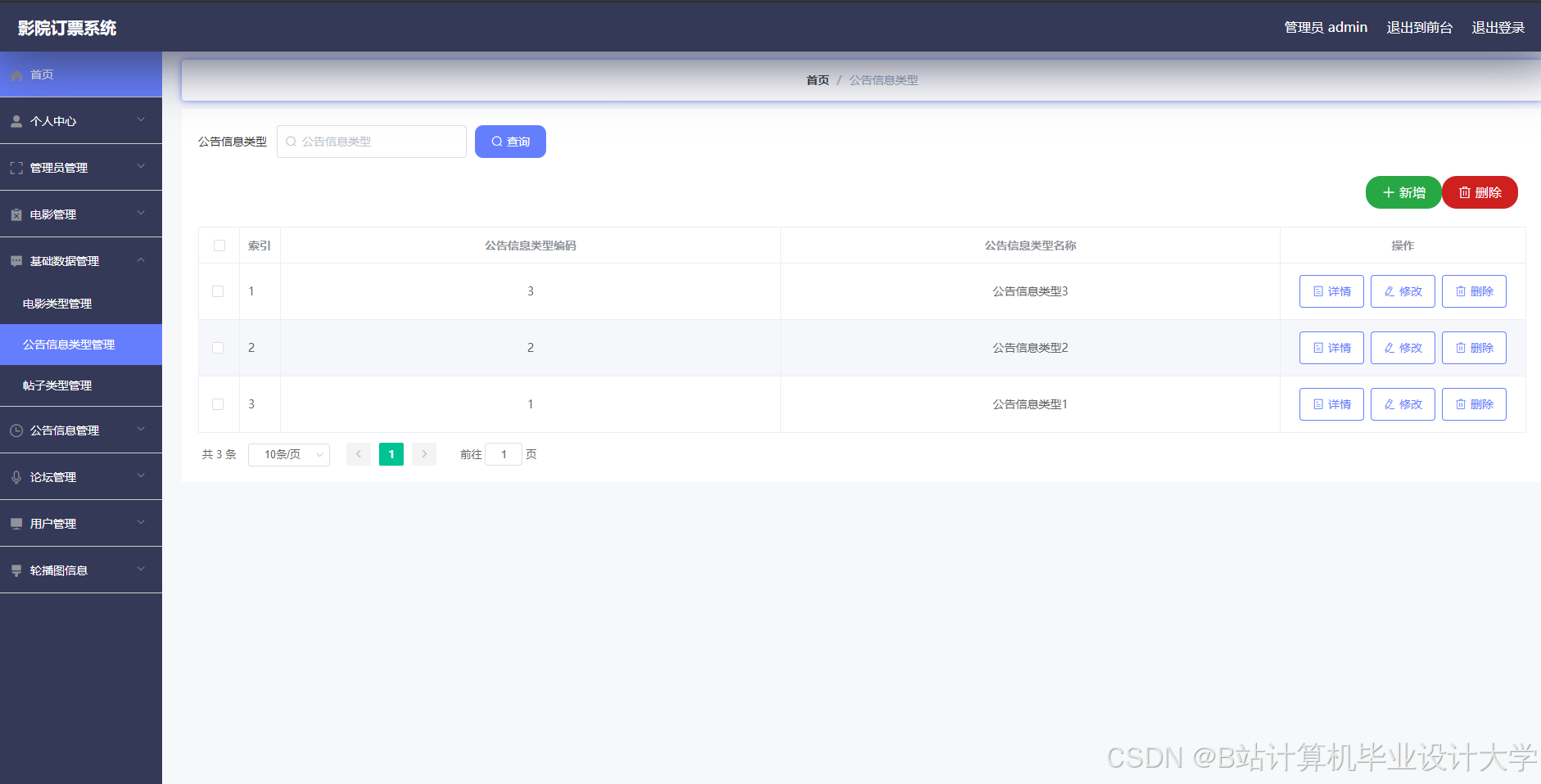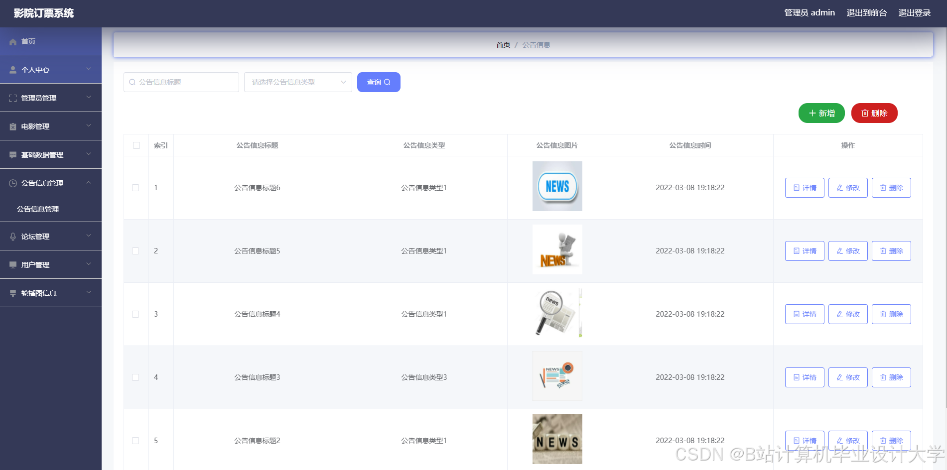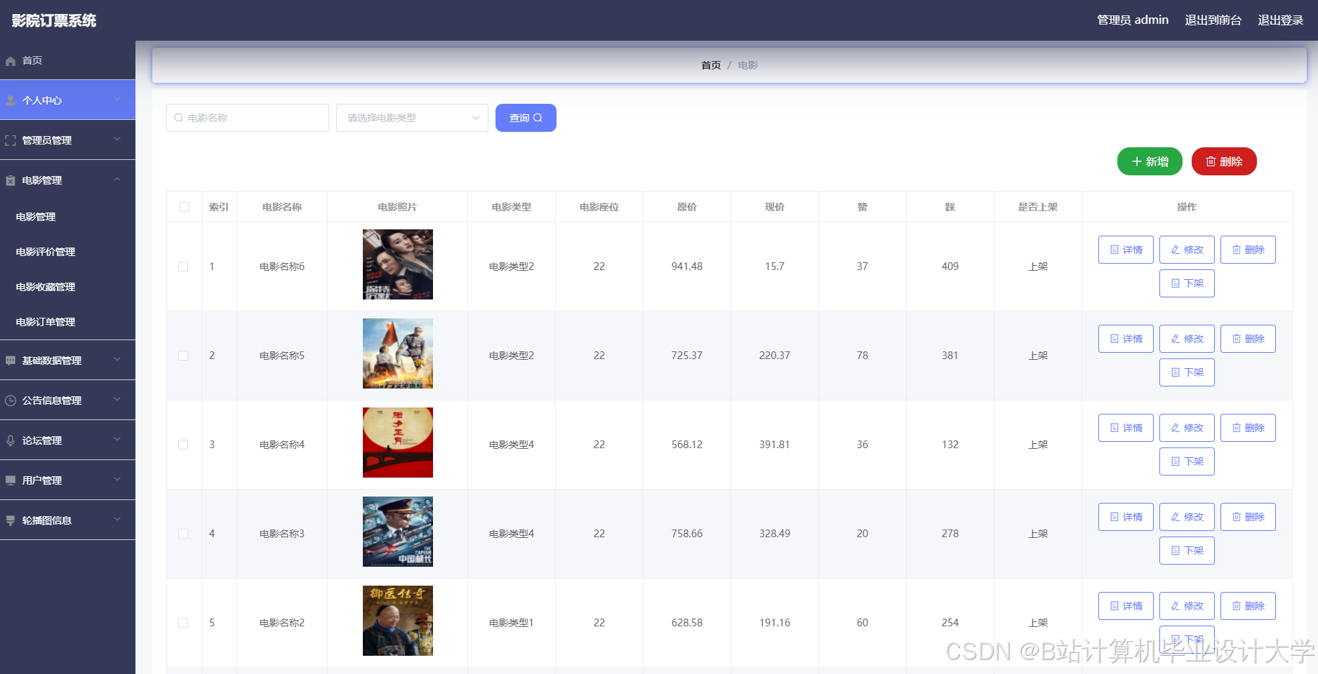现代经济快节奏发展以及不断完善升级的信息化技术,让传统数据信息的管理升级为软件存储,归纳,集中处理数据信息的管理方式。本影院订票系统就是在这样的大环境下诞生,其可以帮助管理者在短时间内处理完毕庞大的数据信息,使用这种软件工具可以帮助管理人员提高事务处理效率,达到事半功倍的效果。此影院订票系统利用当下成熟完善的SSM框架,使用跨平台的可开发大型商业网站的Java语言,以及最受欢迎的RDBMS应用软件之一的Mysql数据库进行程序开发。实现了用户在线选择试题并完成答题,在线查看考核分数。管理员管理电影管理,论坛管理,公告信息管理等功能。影院订票系统的开发根据操作人员需要设计的界面简洁美观,在功能模块布局上跟同类型网站保持一致,程序在实现基本要求功能时,也为数据信息面临的安全问题提供了一些实用的解决方案。可以说该程序在帮助管理者高效率地处理工作事务的同时,也实现了数据信息的整体化,规范化与自动化。
