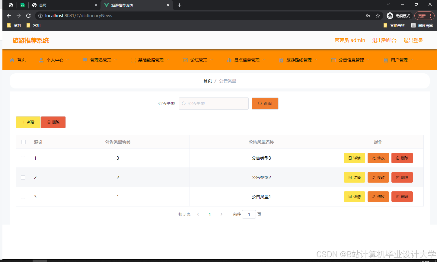当前的网络技术,软件技术等都具备成熟的理论基础,市场上也出现各种技术开发的软件,这些软件都被用于各个领域,包括生活和工作的领域。随着电脑和笔记本的广泛运用,以及各种计算机硬件的完善和升级,市面上的电脑和笔记本的性能都得到提升,可以支持的软件也逐渐增多,因此,在计算机上安装软件来发挥其高效地信息处理的作用,则很受人们的青睐。对于旅游推荐系统信息来讲,通过手工形式处理,在面对庞大的信息数量时,就显得不适宜了,首先需要花费的时间比较多,其次数据出错率比较高,而且对错误的数据进行更改也比较困难,最后,检索数据费事费力。因此,为了解决上述问题,有必要建立旅游推荐系统,来规范旅游推荐系统信息管理流程,让管理工作可以系统化和程序化,同时,旅游推荐系统的有效运用可以帮助管理人员准确快速地处理信息。