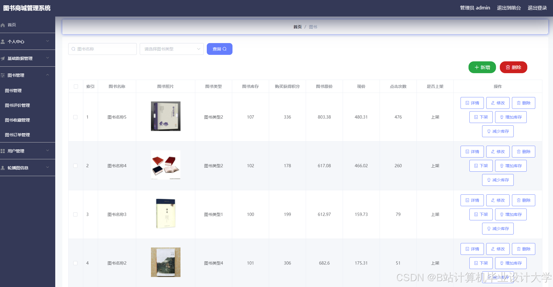 当前社会各行业领域竞争压力非常大,随着当前时代的信息化,科学化发展,让社会各行业领域都争相使用新的信息技术,对行业内的各种相关数据进行科学化,规范化管理。这样的大环境让那些止步不前,不接受信息改革带来的信息技术的企业随时面临被淘汰,被取代的风险。所以当今,各个行业领域,不管是传统的教育行业,餐饮行业,还是旅游行业,医疗行业等领域都将使用新的信息技术进行信息革命,改变传统的纸质化,需要人手工处理工作事务的办公环境。软件信息技术能够覆盖社会各行业领域是时代的发展要求,各种数据以及文件真正实现电子化是信息社会发展的不可逆转的必然趋势。本图书商城管理系统也是紧跟科学技术的发展,运用当今一流的软件技术实现软件系统的开发,让考试信息完全通过管理系统实现科学化,规范化,程序化管理。从而帮助信息管理者节省事务处理的时间,降低数据处理的错误率,对于基础数据的管理水平可以起到促进作用,也从一定程度上对随意的业务管理工作进行了避免,同时,图书商城管理系统的数据库里面存储的各种动态信息,也为上层管理人员作出重大决策提供了大量的事实依据。总之,图书商城管理系统是一款可以真正提升管理者的办公效率的软件系统。