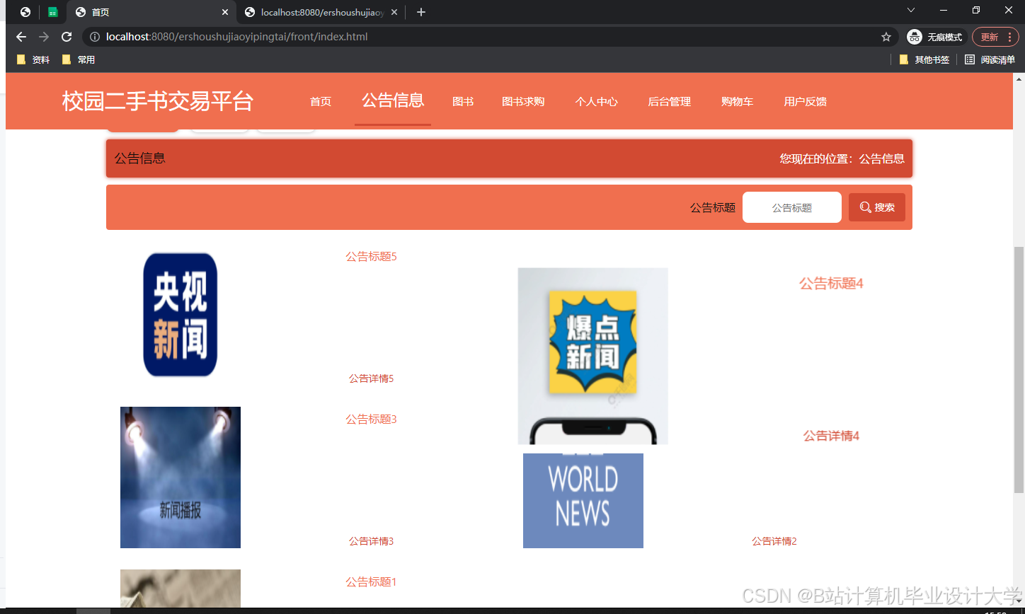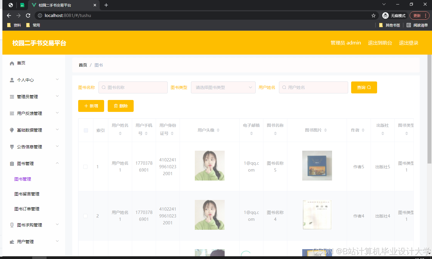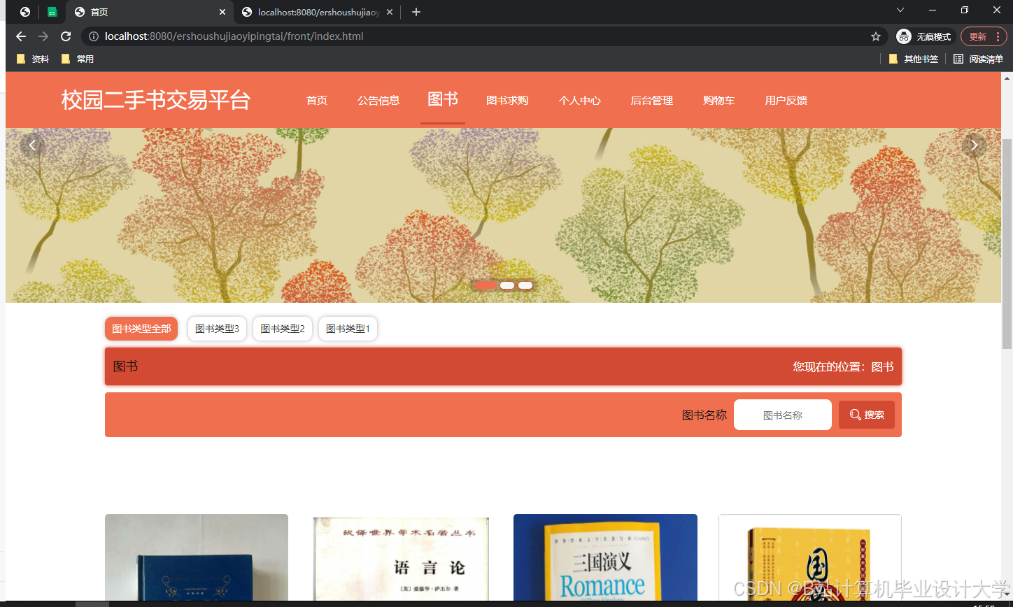 信息数据从传统到当代,是一直在变革当中,突如其来的互联网让传统的信息管理看到了革命性的曙光,因为传统信息管理从时效性,还是安全性,还是可操作性等各个方面来讲,遇到了互联网时代才发现能补上自古以来的短板,有效的提升管理的效率和业务水平。传统的管理模式,时间越久管理的内容越多,也需要更多的人来对数据进行整理,并且数据的汇总查询方面效率也是极其的低下,并且数据安全方面永远不会保证安全性能。结合数据内容管理的种种缺点,在互联网时代都可以得到有效的补充。结合先进的互联网技术,开发符合需求的软件,让数据内容管理不管是从录入的及时性,查看的及时性还是汇总分析的及时性,都能让正确率达到最高,管理更加的科学和便捷。本次开发的校园二手书交易平台实现了图书信息查询。系统用到了关系型数据库中MySql作为系统的数据库,有效的对数据进行安全的存储,有效的备份,对数据可靠性方面得到了保证。并且程序也具备程序需求的所有功能,使得操作性还是安全性都大大提高,让校园二手书交易平台更能从理念走到现实,确确实实的让人们提升信息处理效率。