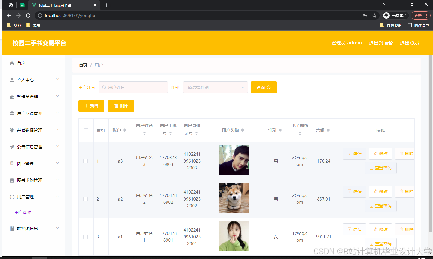 互联网概念的产生到如今的蓬勃发展,用了短短的几十年时间就风靡全球,使得全球各个行业都进行了互联网的改造升级,标志着互联网浪潮的来临。在这个新的时代,各行各业都充分考虑互联网是否能与本行业进行结合,是否能解决本行业或者本行业中某些方面的自古以来的痛点。长期以来,数据内容,数据传播,数据储存等都是一门门专业的内容,因为需要记住的内容很多,造成古人的言简意赅,如今互联网的到来让数据更加的清晰好认不复杂,一目了然不出错,毕竟在整个历史上数据的丢失,传承的断代,都是因为数据不能好好的保存,不能好好的流传。当年的年代用互联网思维和互联网技术,对大量数据的录入更新,存储汇总,备份分析方面,使得远远的超过传统的数据管理技术。在这样的时代潮流下,采用新技术开发新软件,对传统行业进行革命性的改造成为了当今的主流。本次开发校园二手书交易平台,解决了图书信息信息管理关于数据方面的管理分析,存储传输的痛点,不仅仅对管理员提供了便利,还能提高用户的满意度。