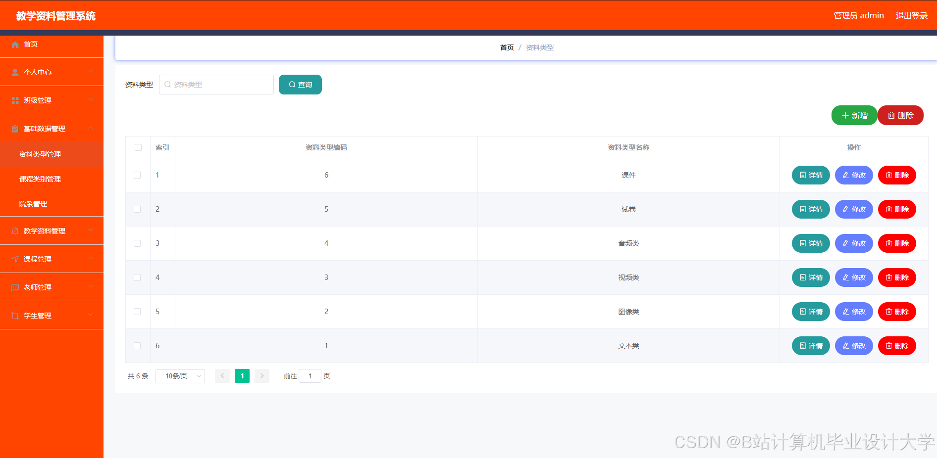 使用旧方法对教学资料管理系统的信息进行系统化管理已经不再让人们信赖了,把现在的网络信息技术运用在教学资料管理系统的管理上面可以解决许多信息管理上面的难题,比如处理数据时间很长,数据存在错误不能及时纠正等问题。这次开发的教学资料管理系统对班级管理、字典管理、教学资料管理、课程管理、老师管理、学生管理、管理员管理等进行集中化处理。经过前面自己查阅的网络知识,加上自己在学校课堂上学习的知识,决定开发系统选择B/S模式这种高效率的模式完成系统功能开发。这种模式让操作员基于浏览器的方式进行网站访问,采用的主流的Java语言这种面向对象的语言进行教学资料管理系统程序的开发,在数据库的选择上面,选择功能强大的Mysql数据库进行数据的存放操作。教学资料管理系统的开发让用户查看课程信息变得容易,让管理员高效管理课程信息。