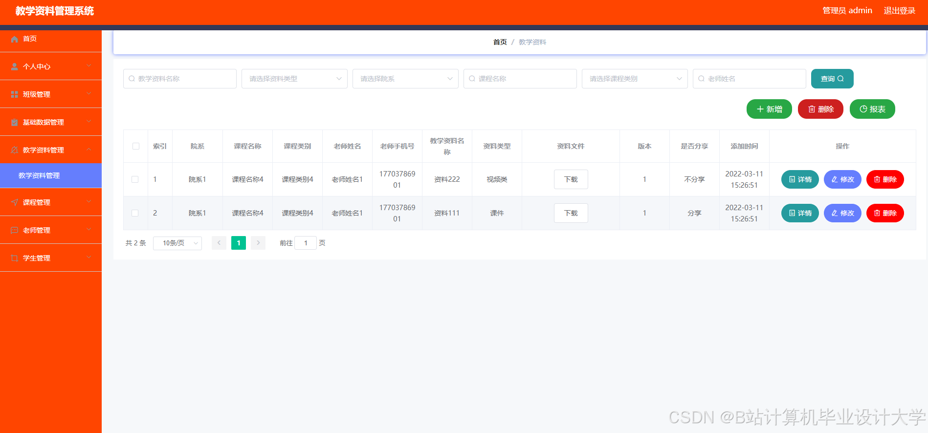关键词:教学资料管理系统;课程信息;教学资料;自助资讯