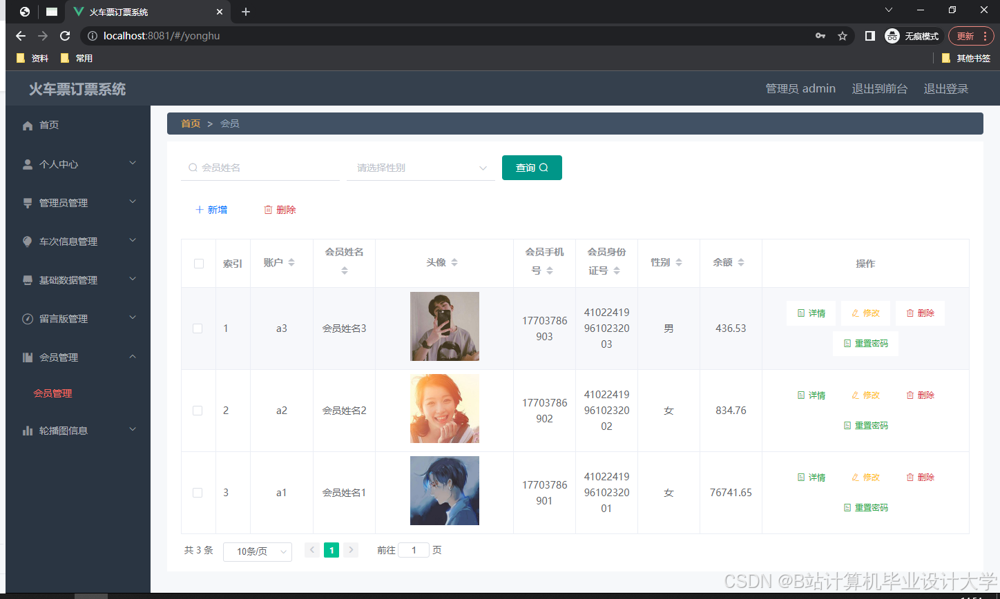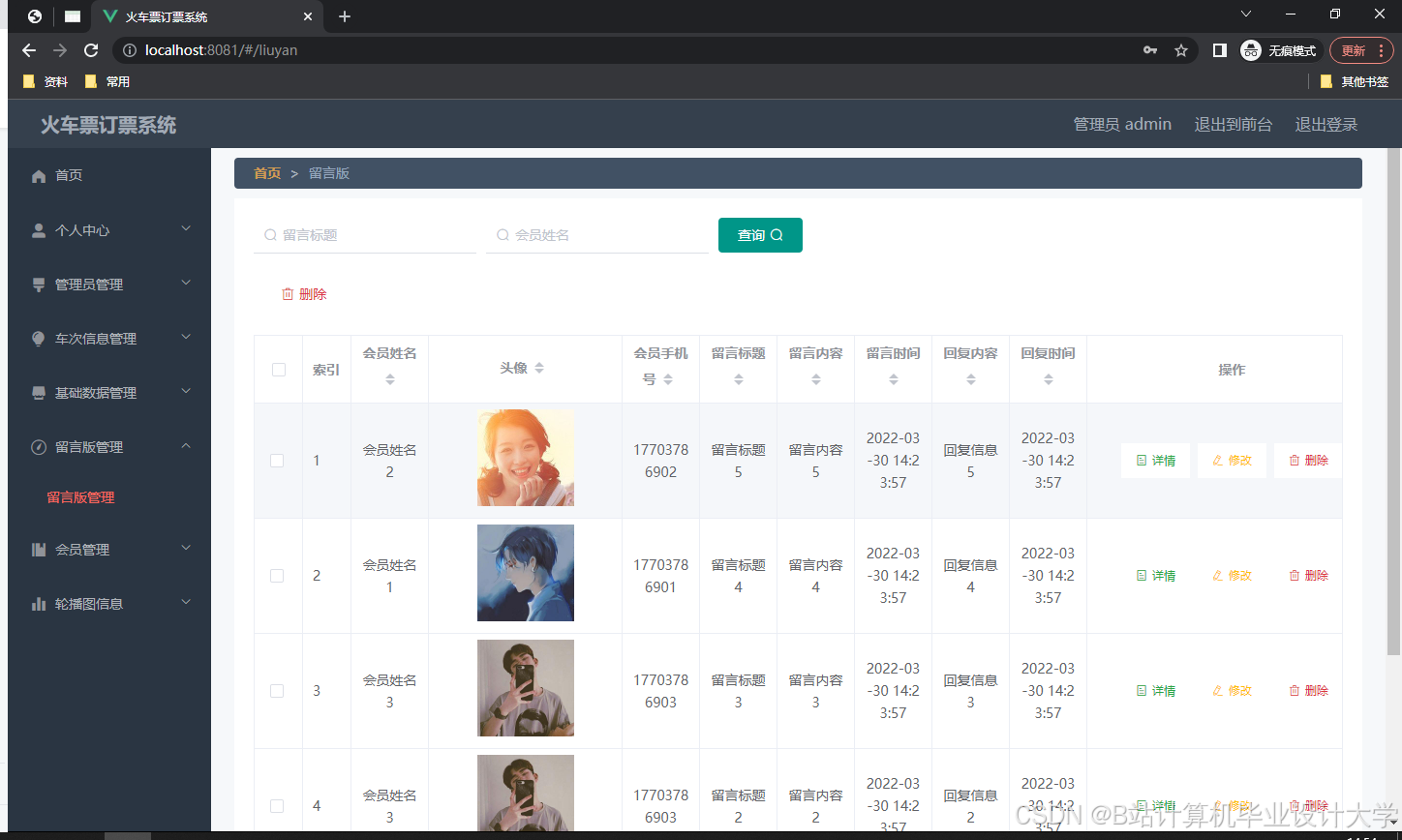 火车票订票系统是一款运用软件开发技术设计实现的应用系统,在信息处理上可以达到快速的目的,不管是针对数据添加,数据维护和统计,以及数据查询等处理要求,火车票订票系统都可以轻松应对。