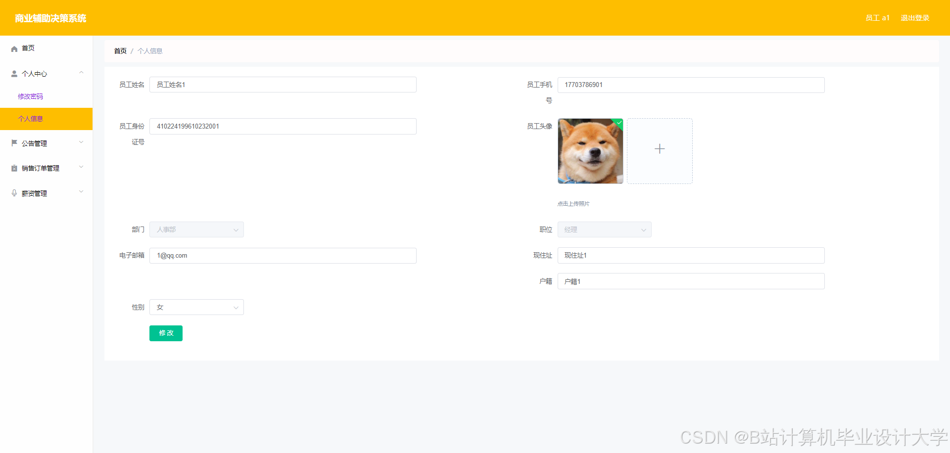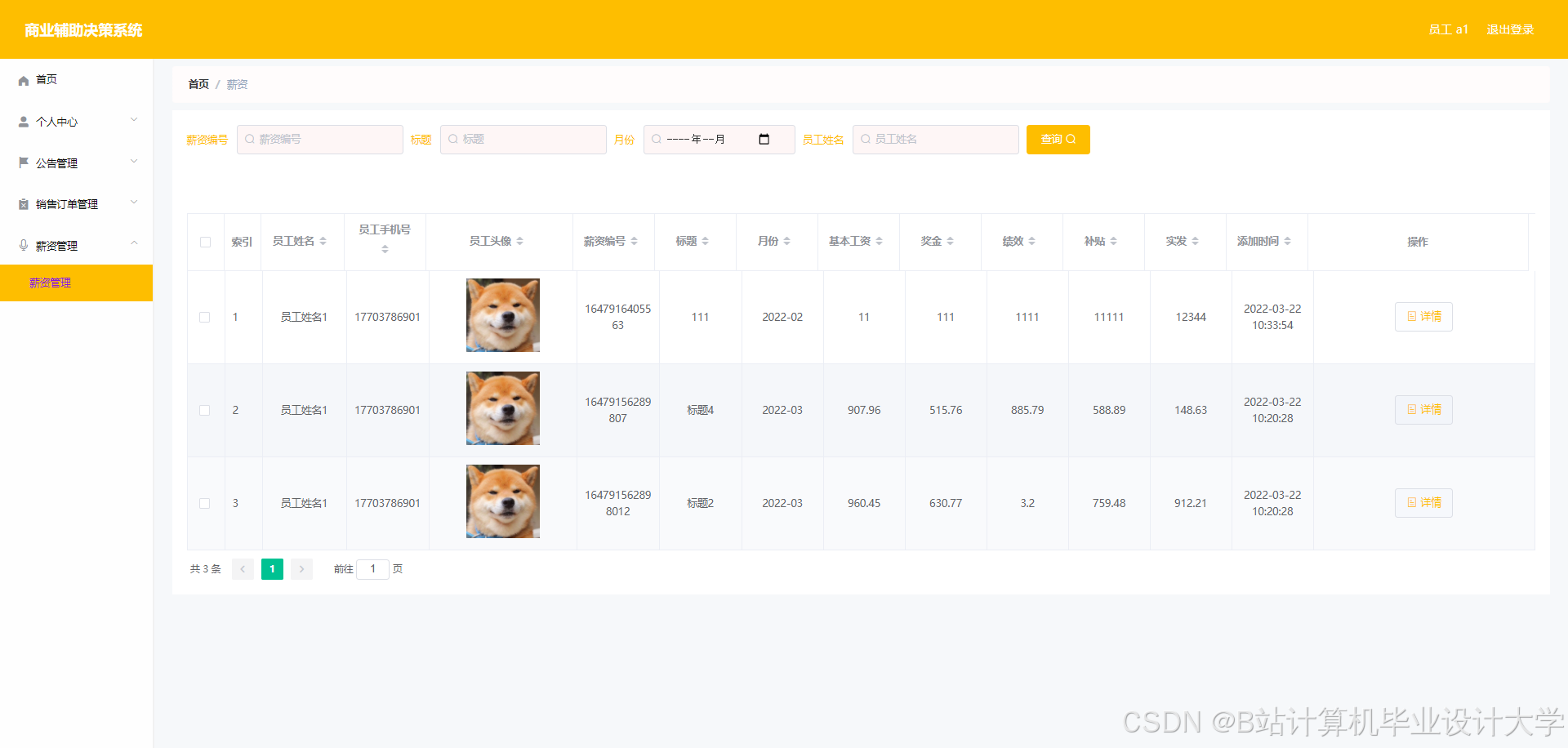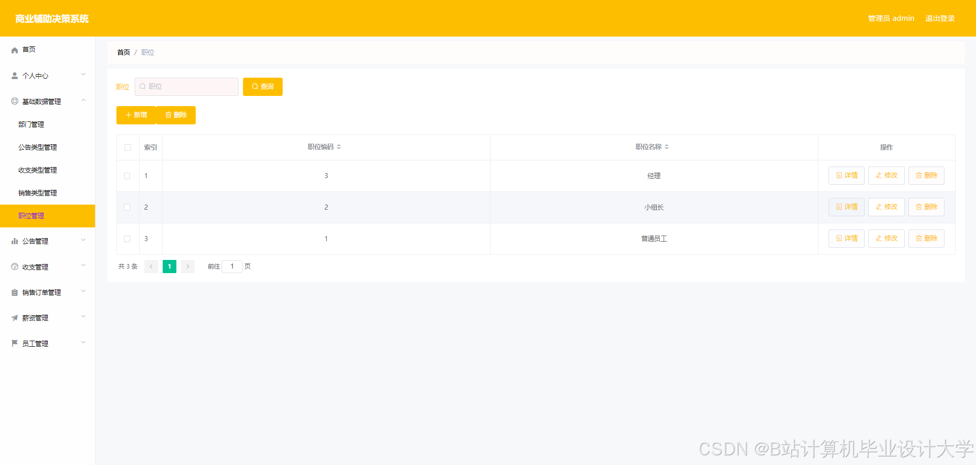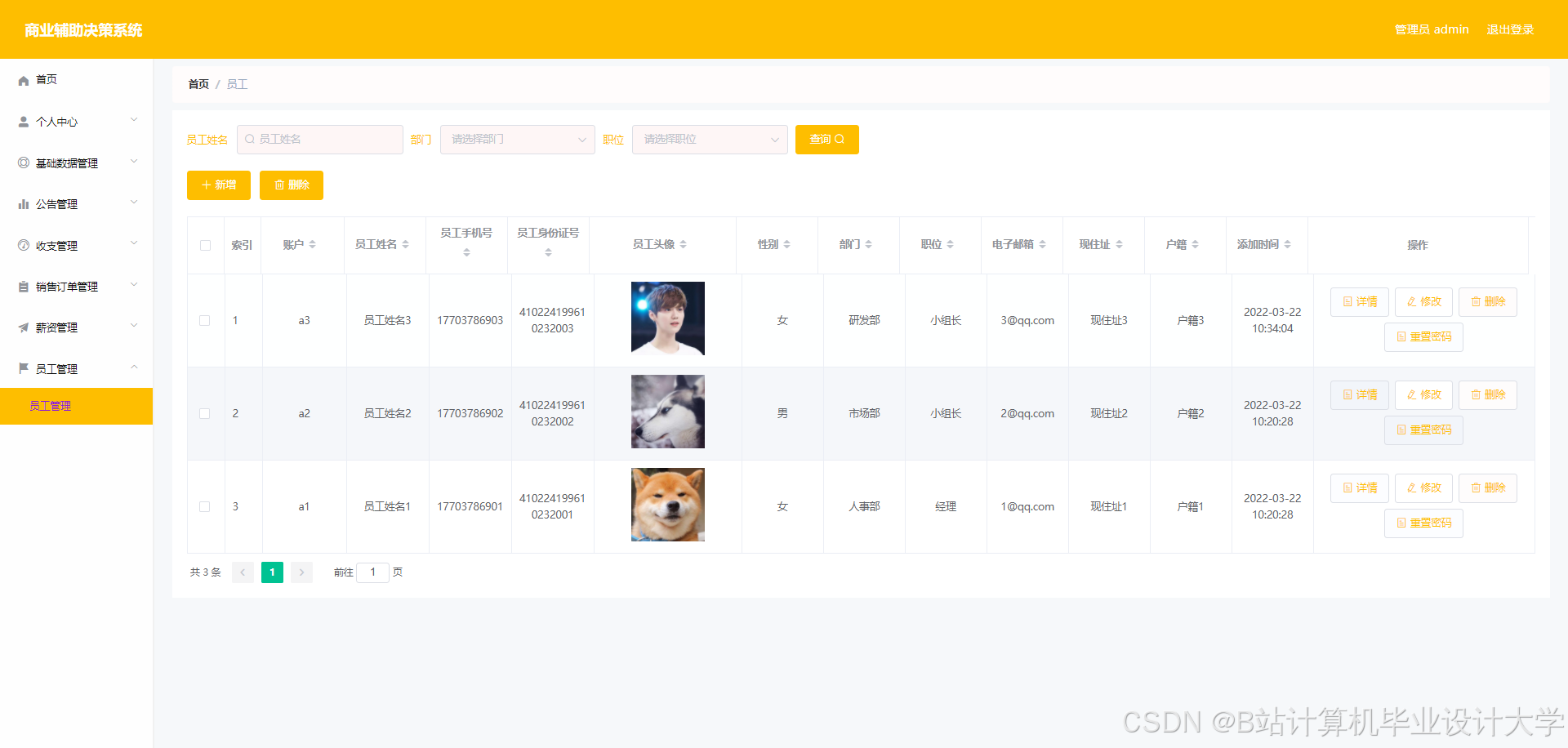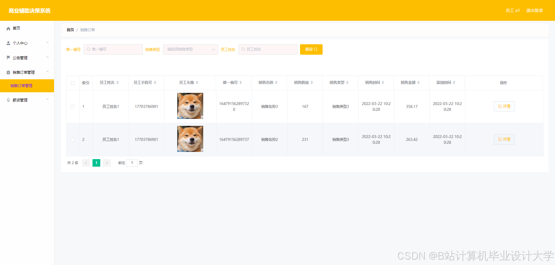 The functions implemented by the commercial decision-making system include income information management and expenditure information management, employee sales order information management, employee salary management, employee management, announcement management and other functions. The system uses Mysql database, Java language, Spring Boot framework and other technologies for programming.