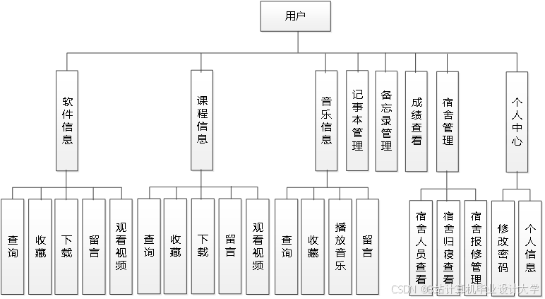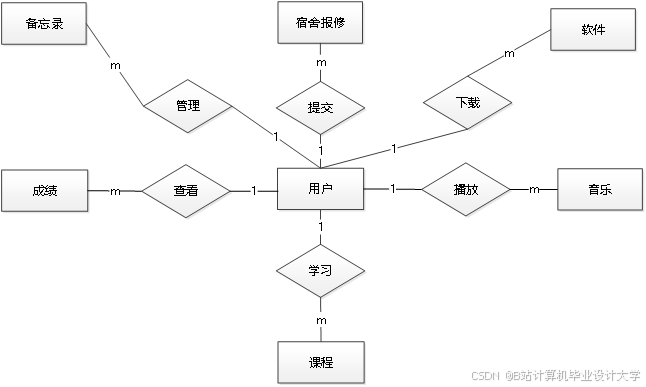 第4章:设计智慧校园管理系统的功能结构,设计数据库E-R图以及对数据表的存储结构进行设计。