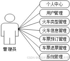 - 管理员登录系统后,可以对个人信息进行修改,对用户管理、火车类型管理、火车信息管理、车票预订管理、车票退票管理、系统管理等功能进行管理;