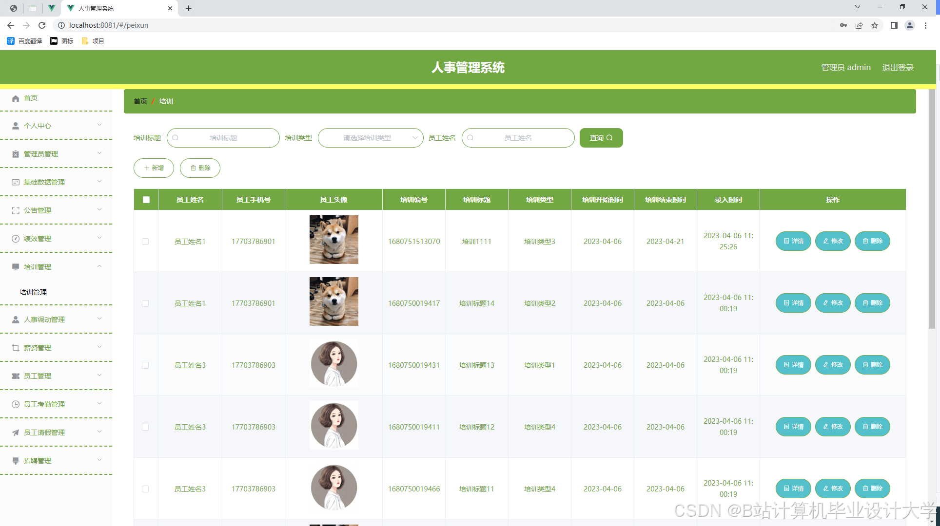 4、员工方面的信息都是通过网站进行显示,其实质是这些信息都保存在网站对应的数据库里面。只要操作员不去恶意删除信息,那么这些信息将会永久保存。