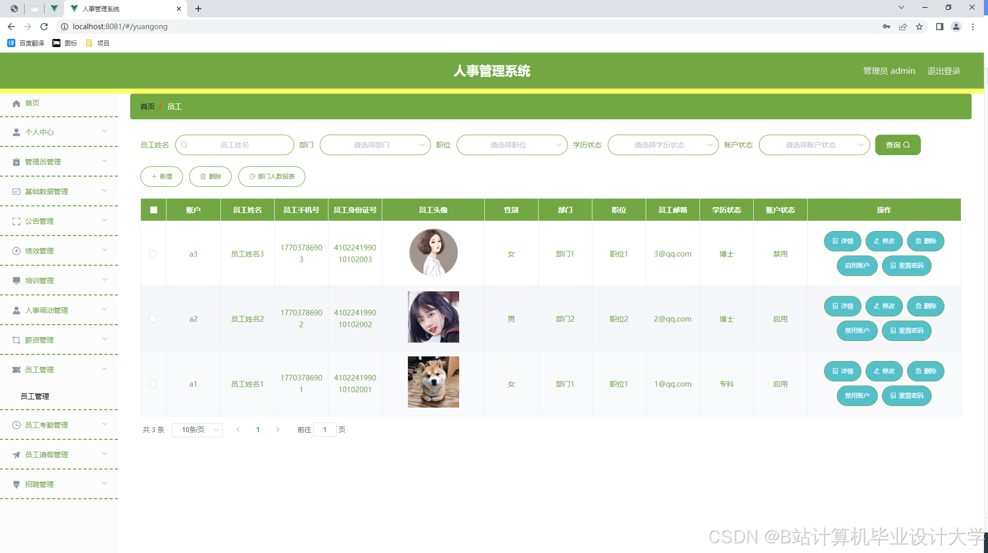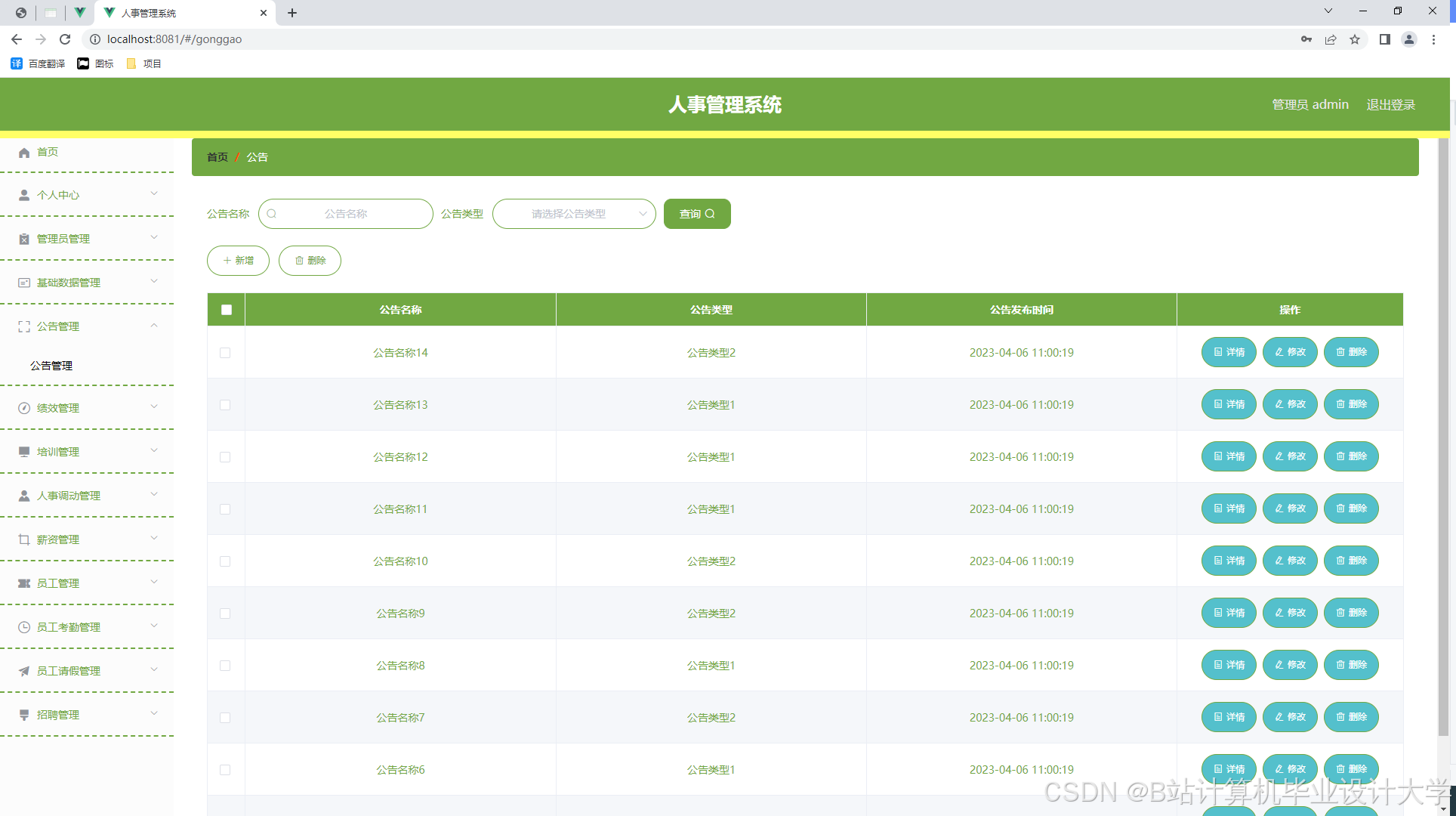 关键词:人事管理系统;员工信息;公告;自助资讯