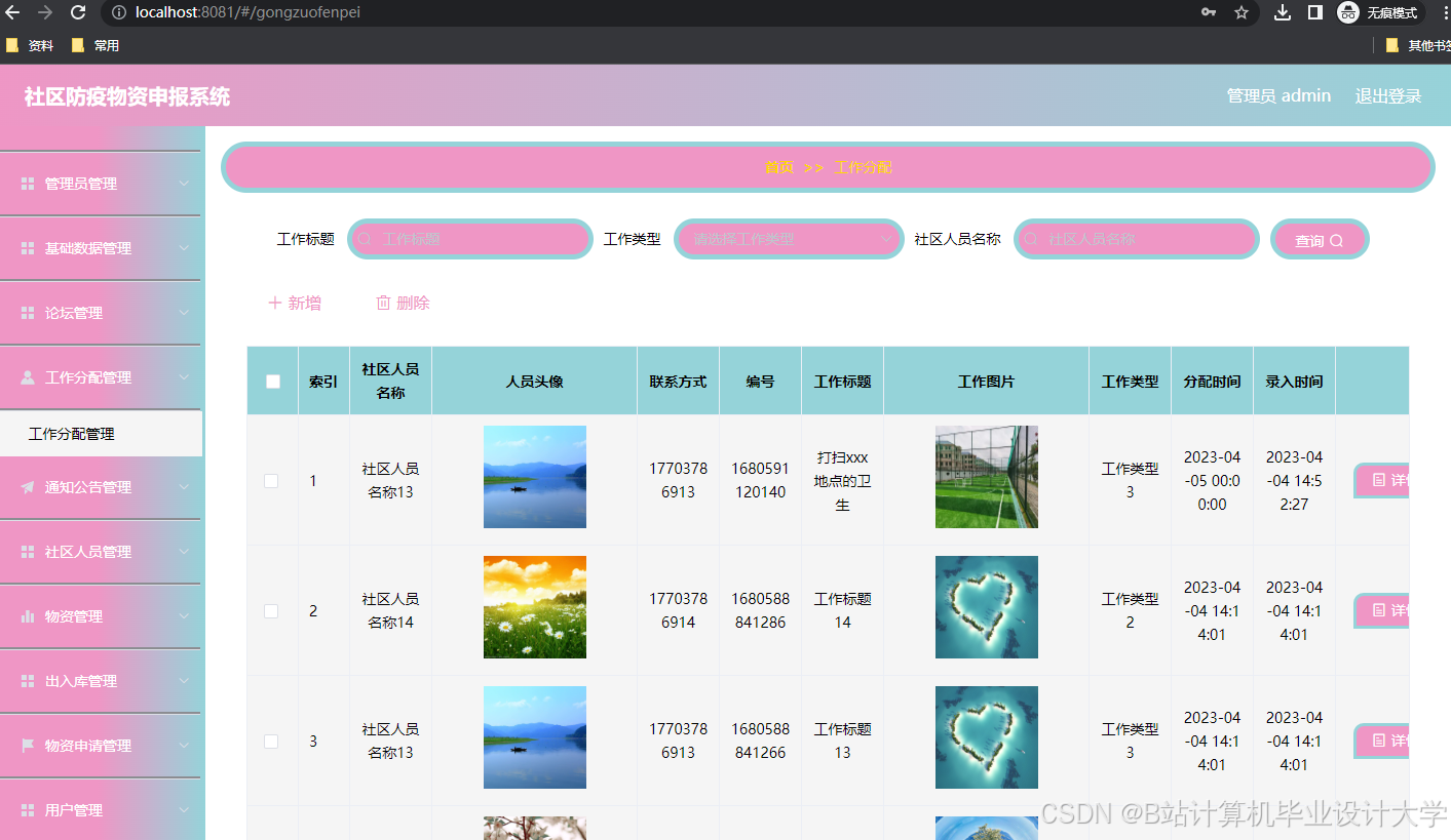 社区防疫物资申报系统是一款运用软件开发技术设计实现的应用系统,在信息处理上可以达到快速的目的,不管是针对数据添加,数据维护和统计,以及数据查询等处理要求,社区防疫物资申报系统都可以轻松应对。