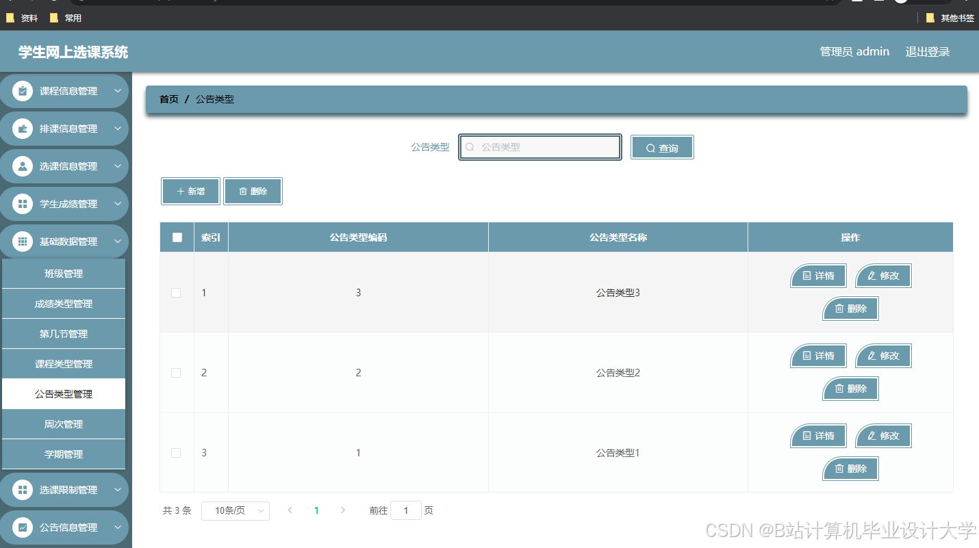 学生网上选课系统可以对学生网上选课系统信息进行集中管理,可以真正避免传统管理的缺陷。学生网上选课系统是一款运用软件开发技术设计实现的应用系统,在信息处理上可以达到快速的目的,不管是针对数据添加,数据维护和统计,以及数据查询等处理要求,学生网上选课系统都可以轻松应对。所以,学生网上选课系统的运用是让学生网上选课系统信息管理升级的最好方式。它可以实现信息处理的便利化要求,还可以规范信息处理的流程,让事务处理成为管理人员手中的一件简单事,而不是之前手工处理时的困难事。尽管学生网上选课系统具备较完善的功能,但是也需要管理人员利用闲暇时间提升自身素质以及个人能力,在操作学生网上选课系统时可以最大化运用学生网上选课系统提供的功能,让系统在满足高效率处理数据的同时,也能始终稳定运行,还可以确保数据的可靠性与数据处理的质量。