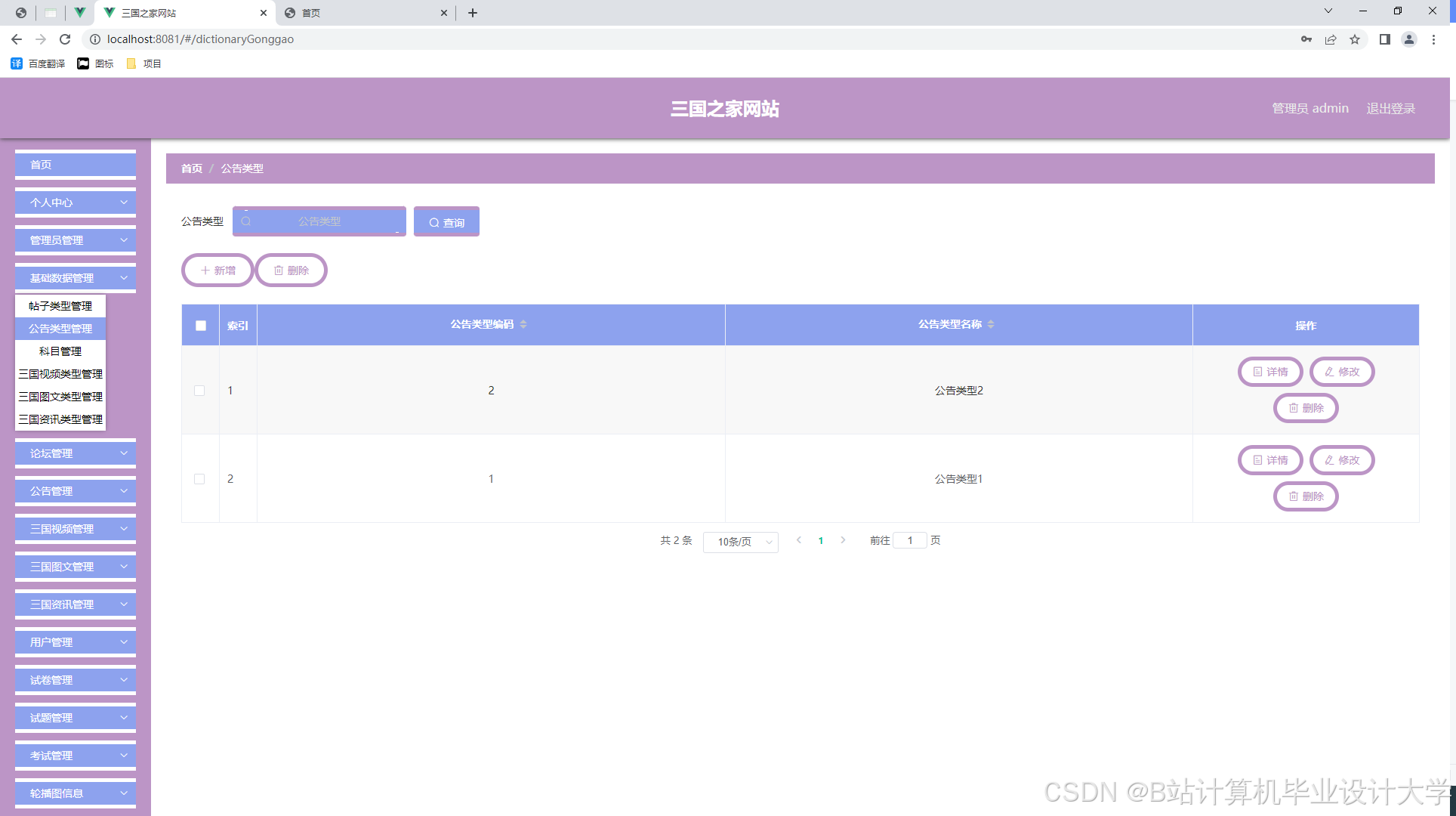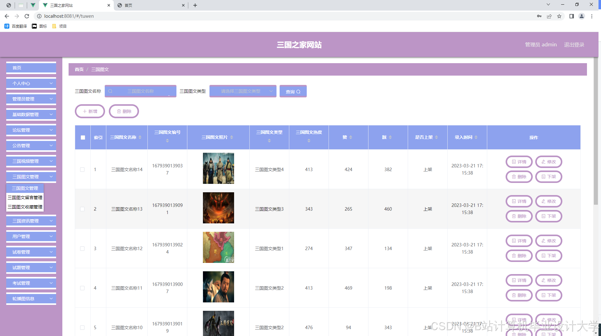 关键词:三国之家网站管理;Java语言;VUE;AJAX技术;系统测试