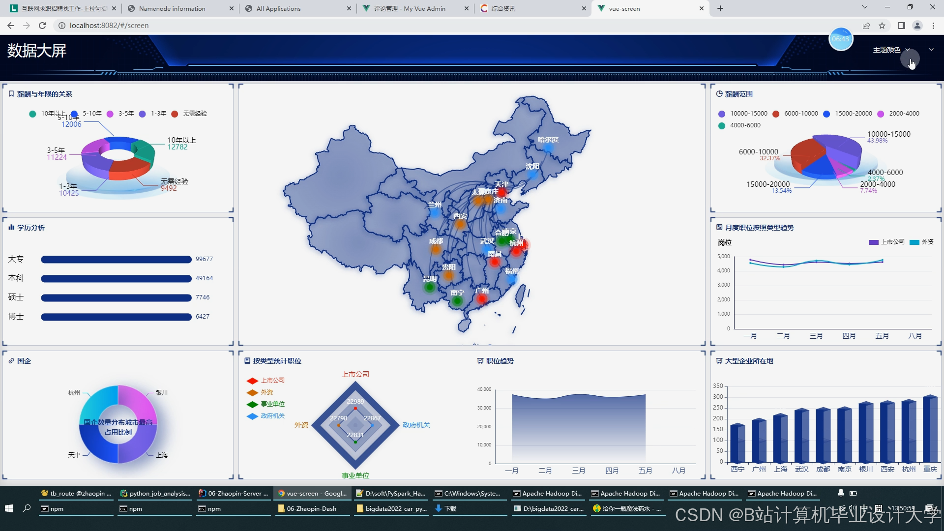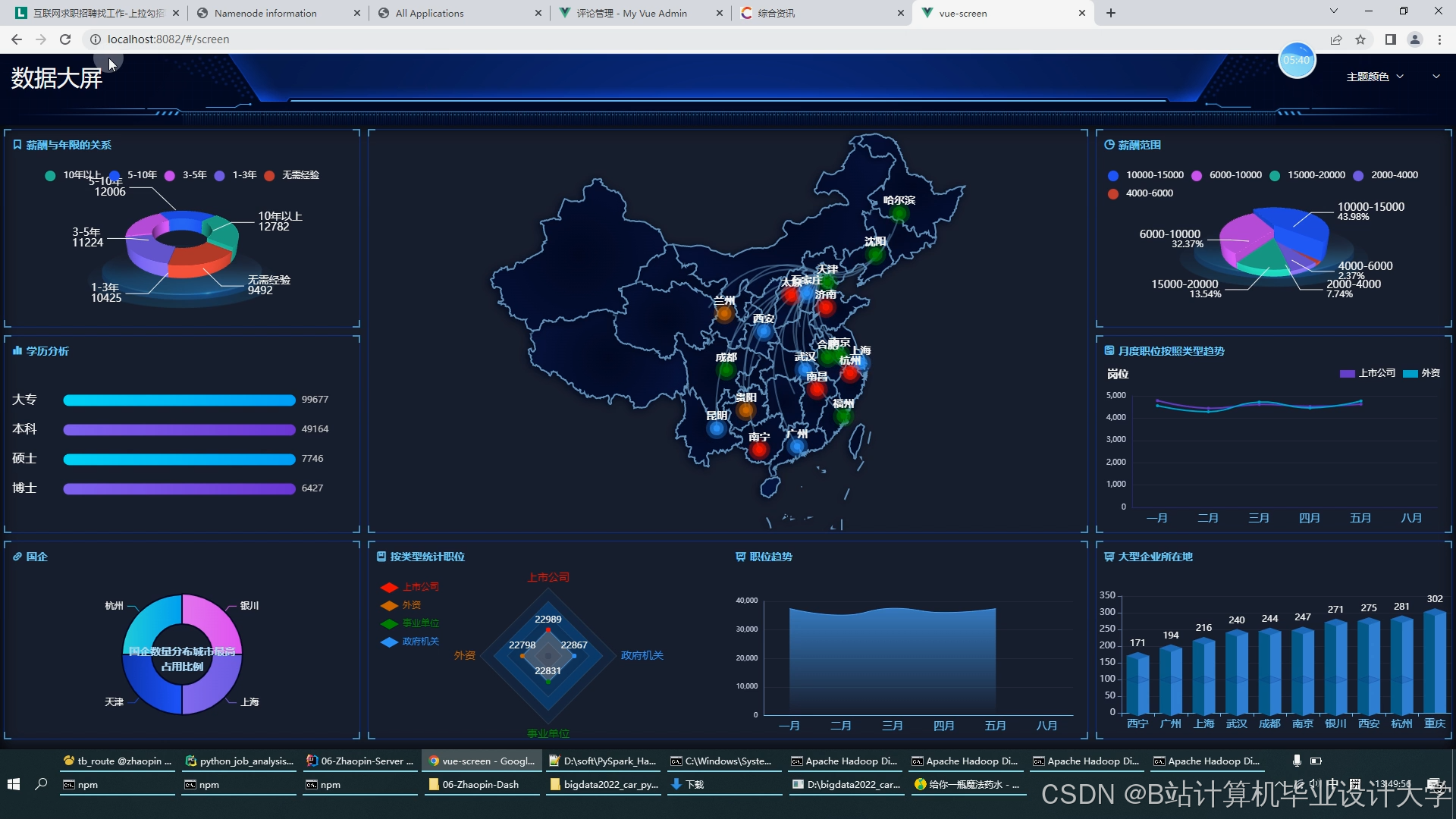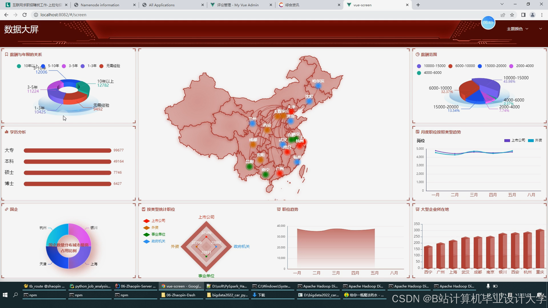 - 首次将Hadoop、Spark和Hive等技术应用于招聘领域,实现招聘数据的深度挖掘和可视化展示,为招聘企业和求职者提供更加精准、高效的服务。