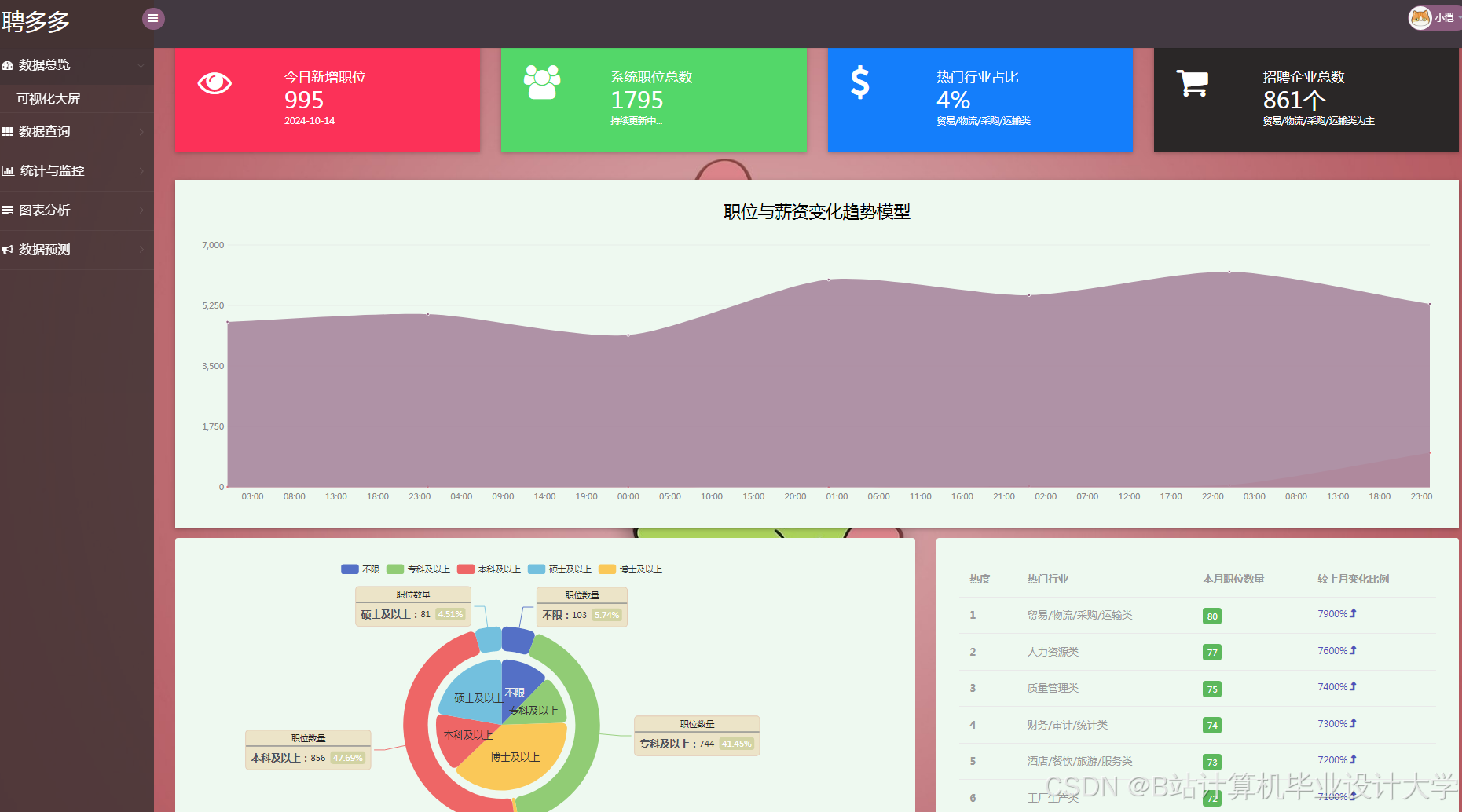 - 招聘可视化系统:实现招聘数据的可视化展示,提高信息的可读性和理解性。