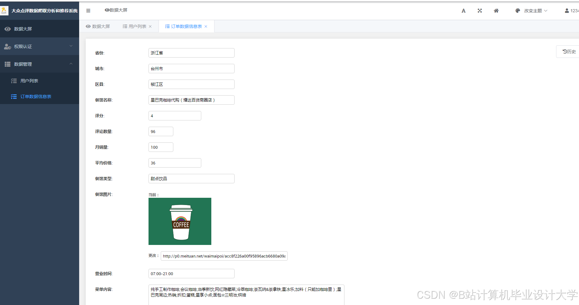 - 美食可视化系统:构建一个美食可视化系统,将美食信息、用户行为等数据进行可视化展示,提高平台用户体验。