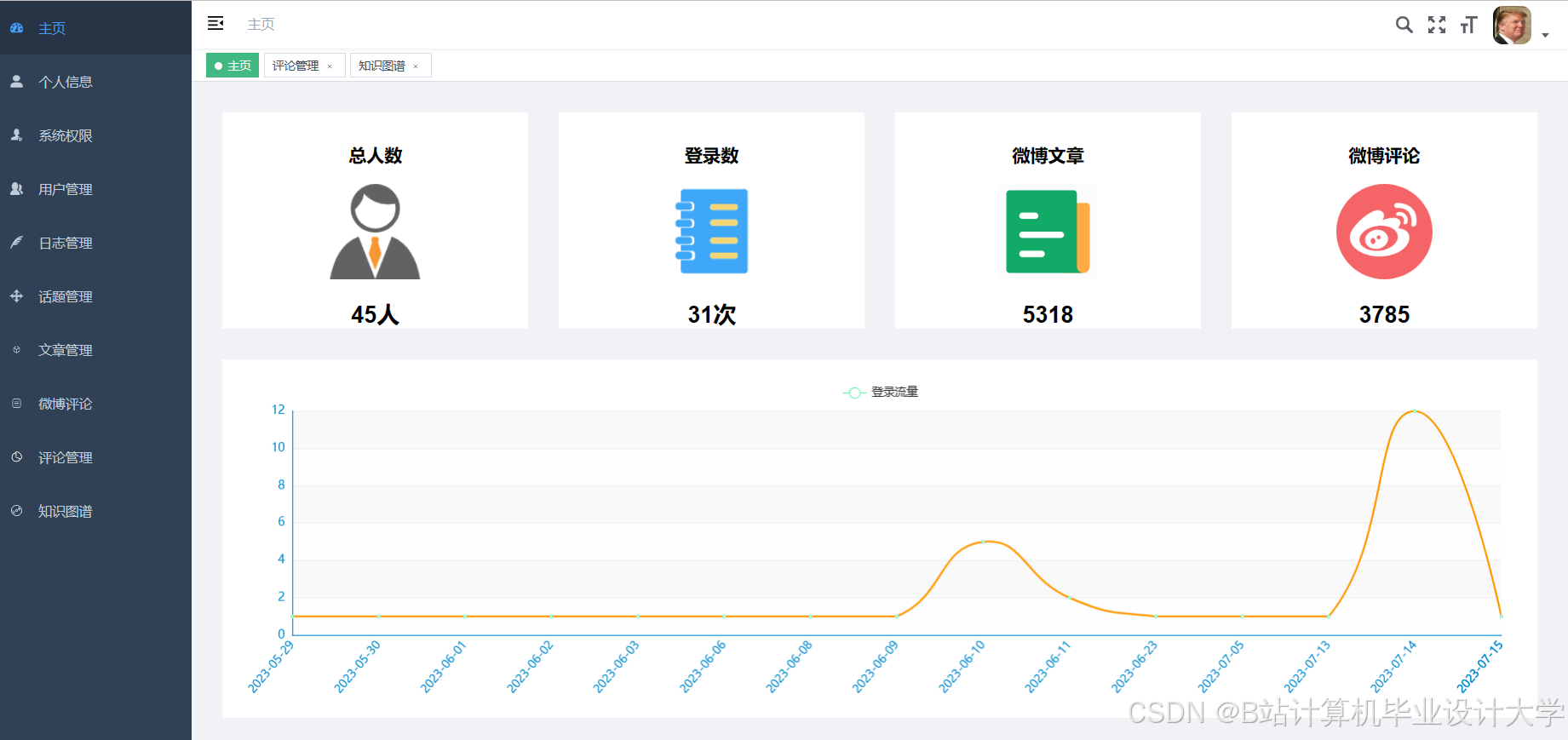 - 系统成果:开发微博舆情分析平台,支持情感可视化、热点预测及个性化推荐功能。