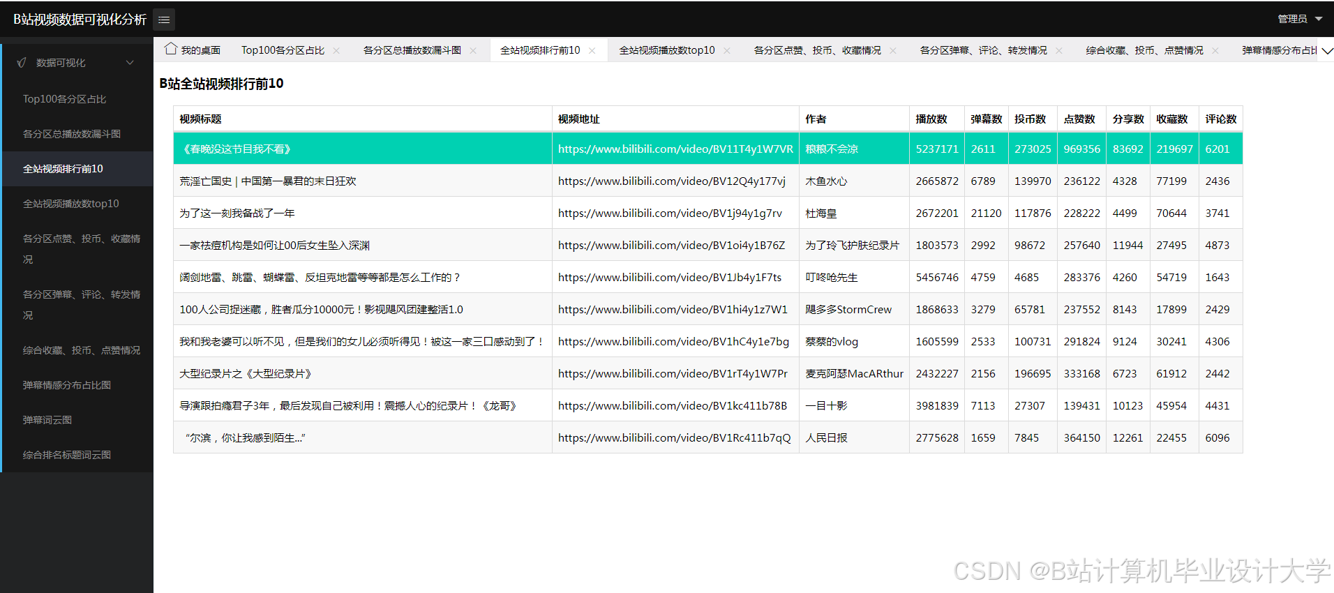 - 前端:使用HTML、CSS、JavaScript等技术构建用户界面,展示视频推荐、弹幕情感分析和视频可视化结果。