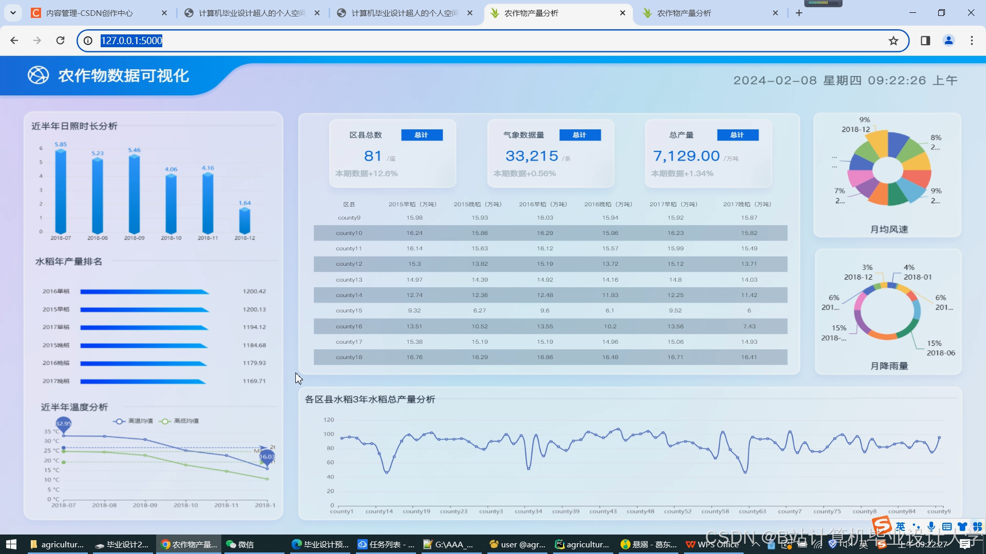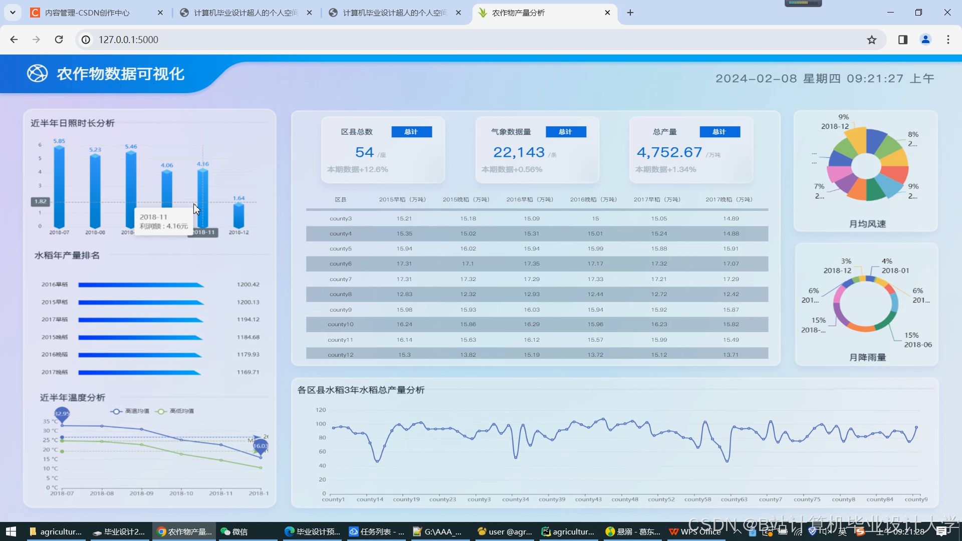 农产品可视化系统:开发一个可视化界面,将农作物产量预测结果、历史产量趋势、气象数据对比等以图表、地图等形式直观展示,便于用户理解和分析。
