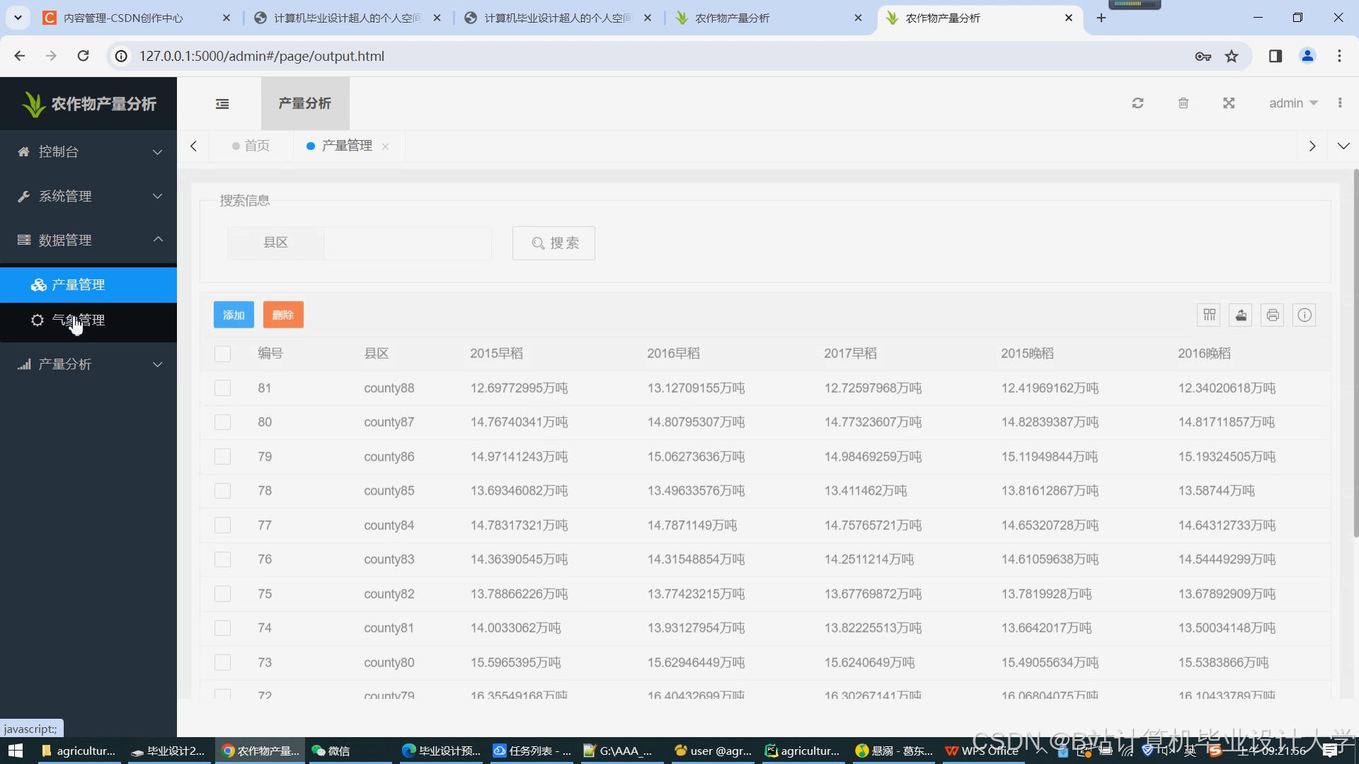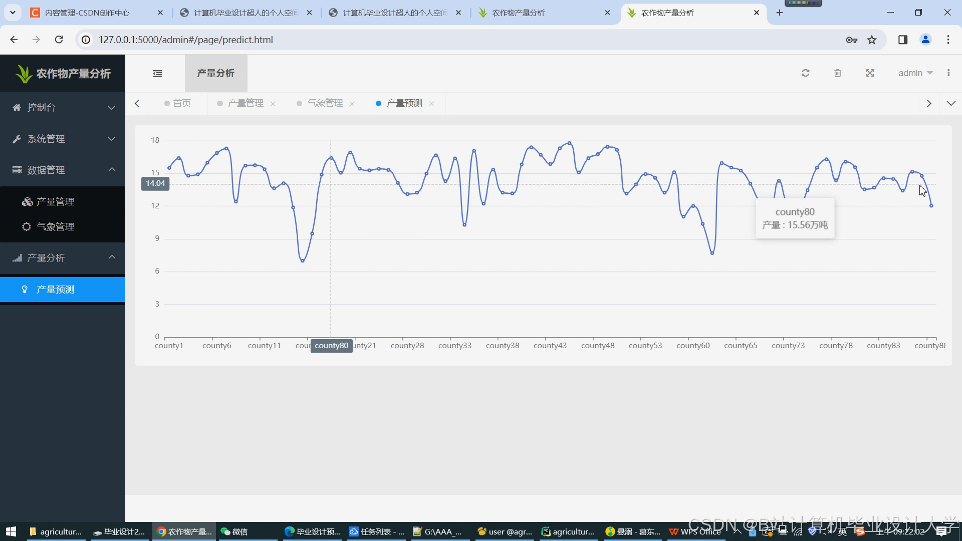 农产品可视化系统:直观展示农作物产量预测结果、历史数据对比和气象数据等信息,便于用户理解和分析。