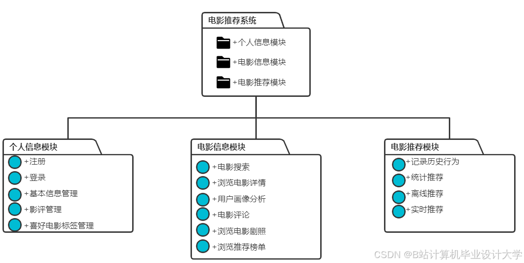 - 第9-10个月:开发前端展示与交互模块,提供电影搜索、浏览、推荐列表查看等功能,并进行前端与后端的集成和测试。