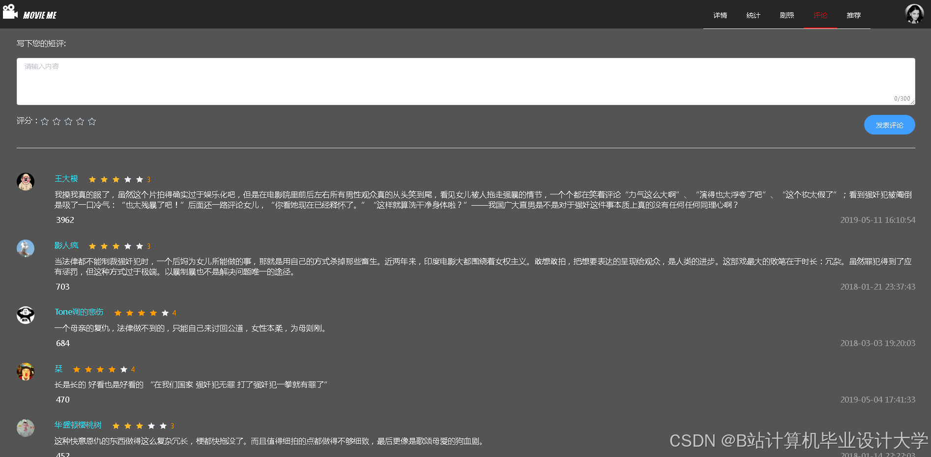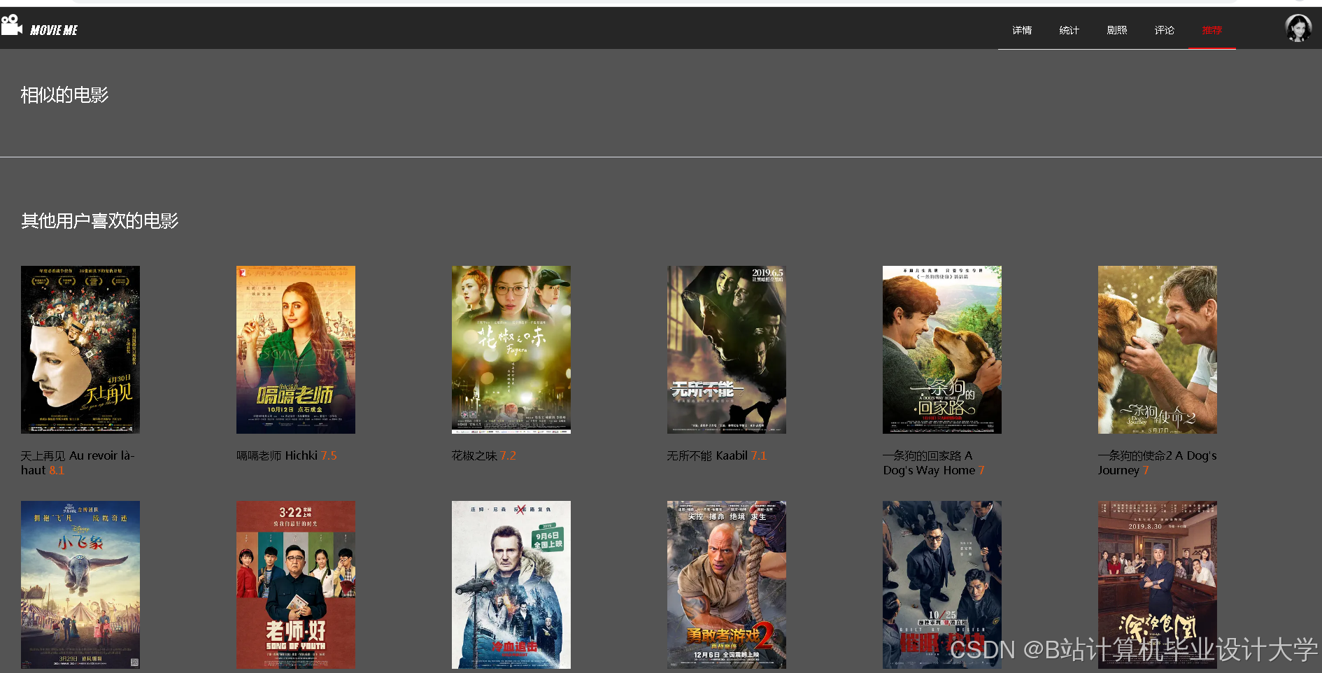 开发用户友好的前端界面,提供电影搜索、浏览、推荐列表查看等功能,确保用户能够方便地使用系统。前端可以采用React、Vue等现代前端框架进行开发。