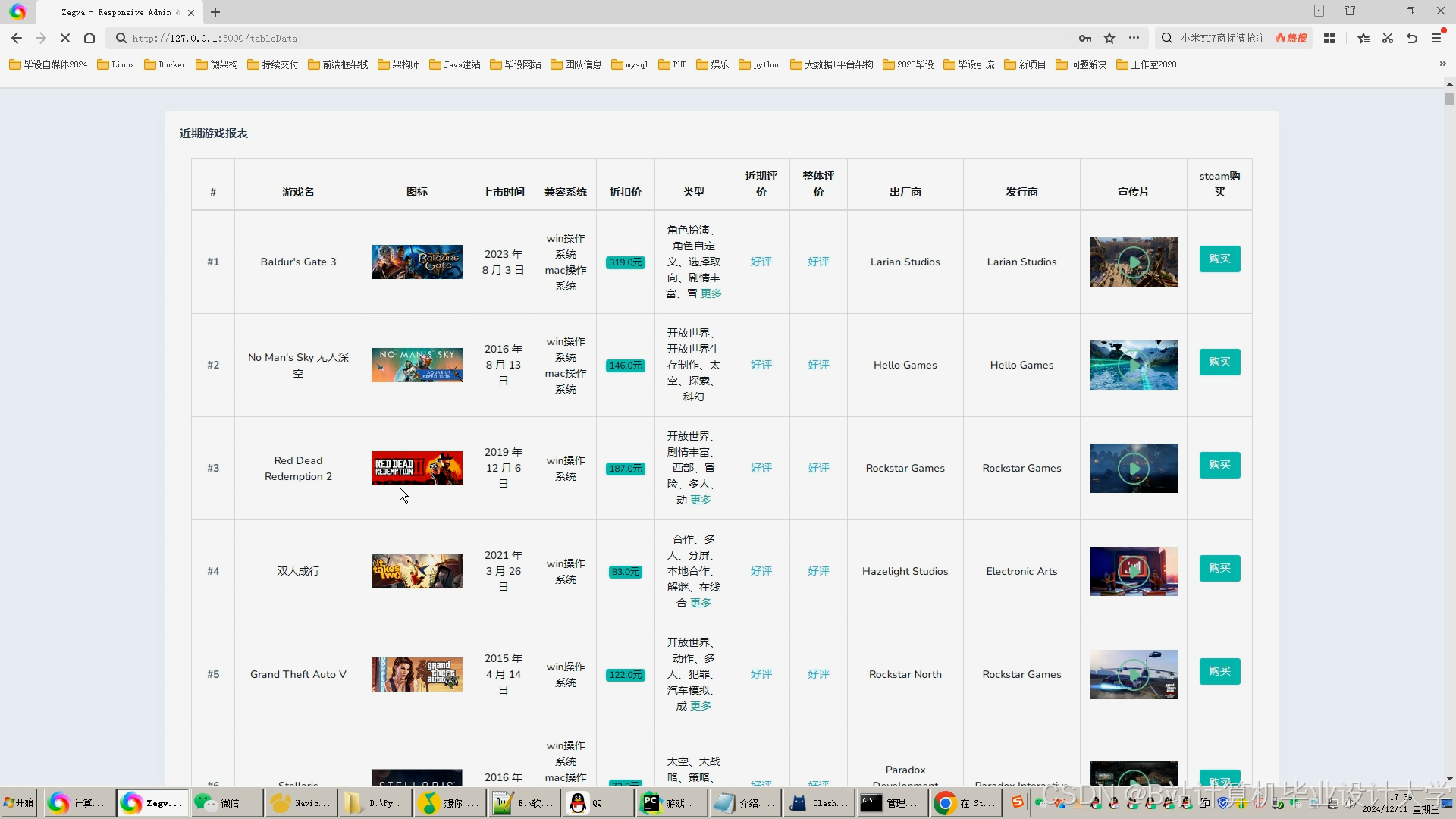 《Django+Vue.js游戏推荐与可视化分析系统》任务书