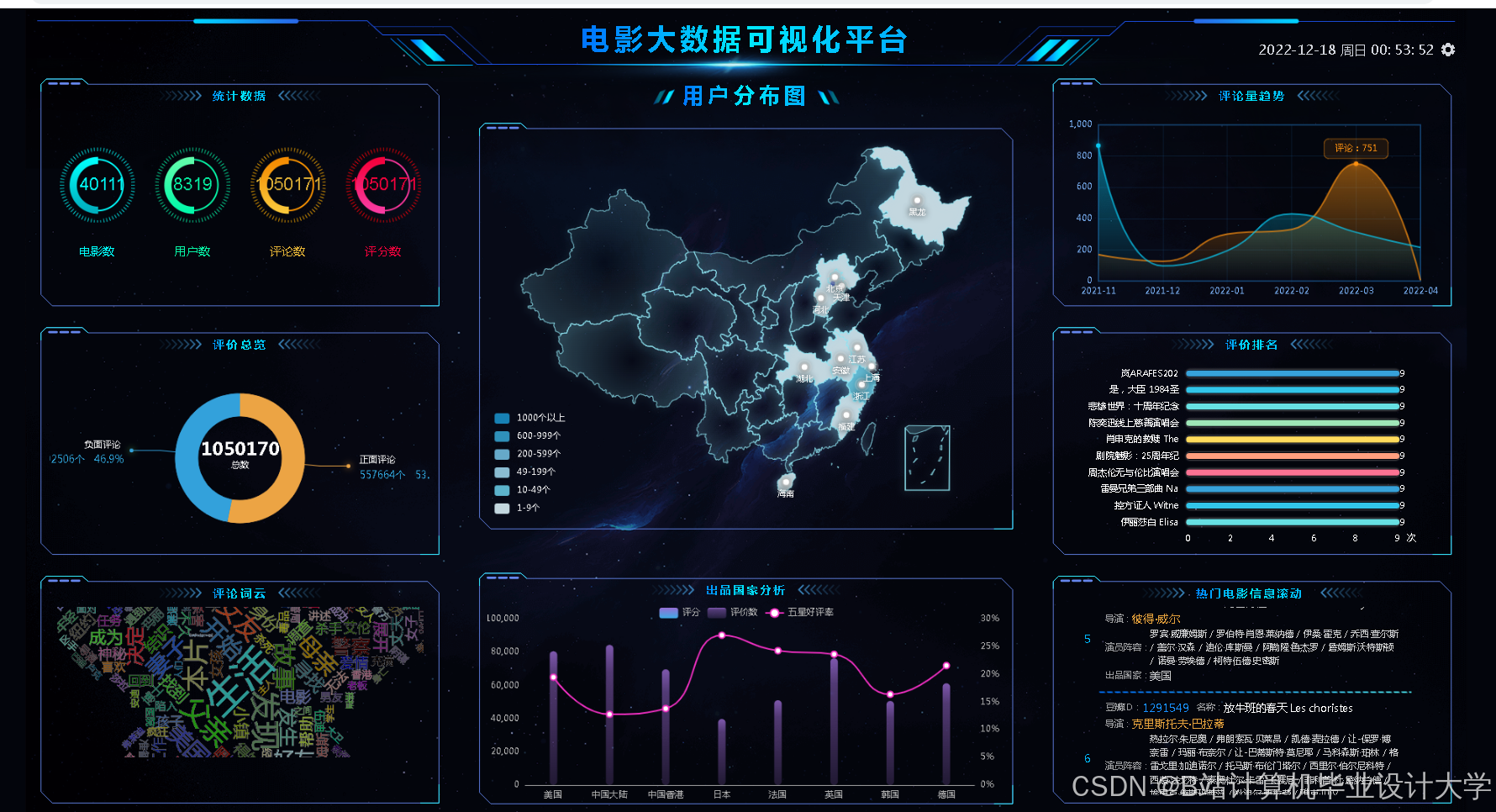 - 数据采集与预处理:利用Kafka实时收集电影数据和用户行为数据,并利用Spark进行数据清洗、去重、标准化等预处理操作;