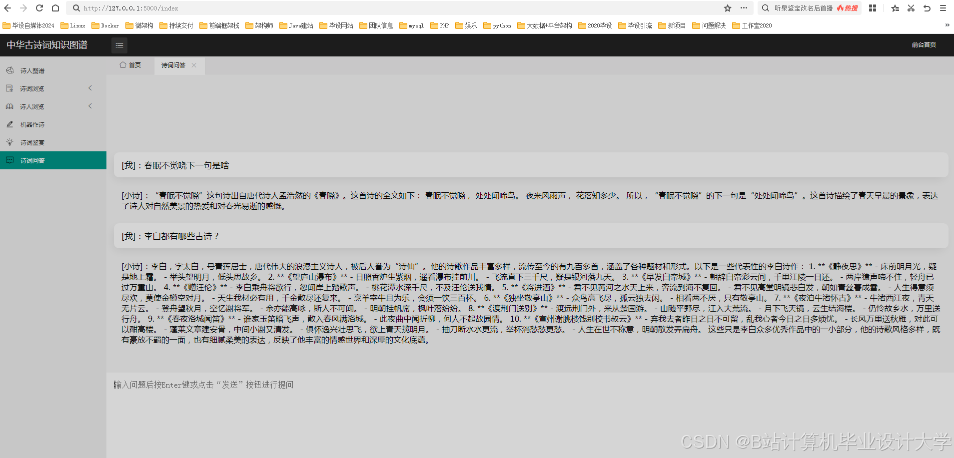 - 设计并实现古诗词智能问答系统,为用户提供古诗词相关的问答服务。