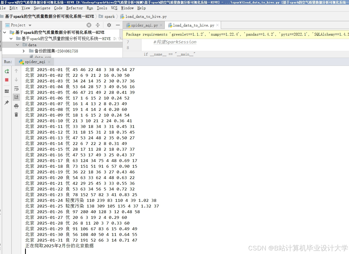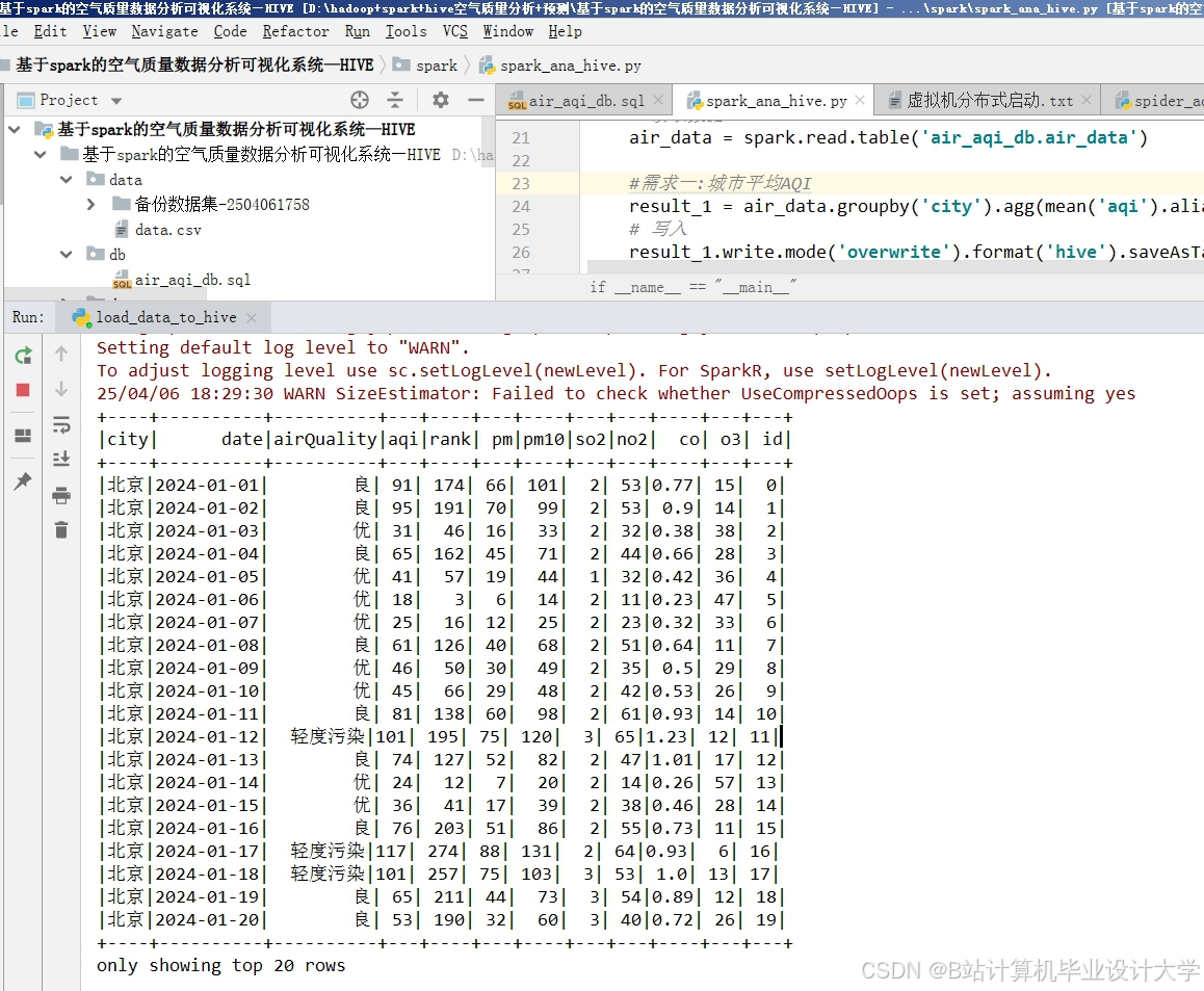 关键词:空气质量预测;Hadoop;Spark;Hive;机器学习