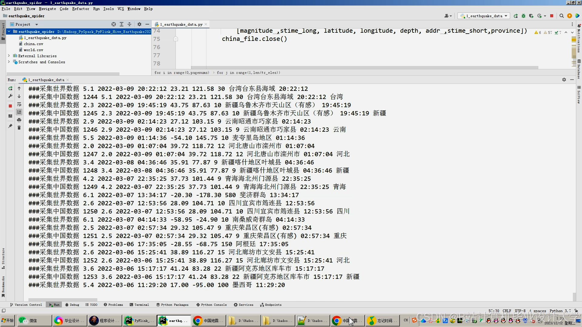 - 存储层:基于HDFS实现地震数据的分布式存储,Hive构建数据仓库。