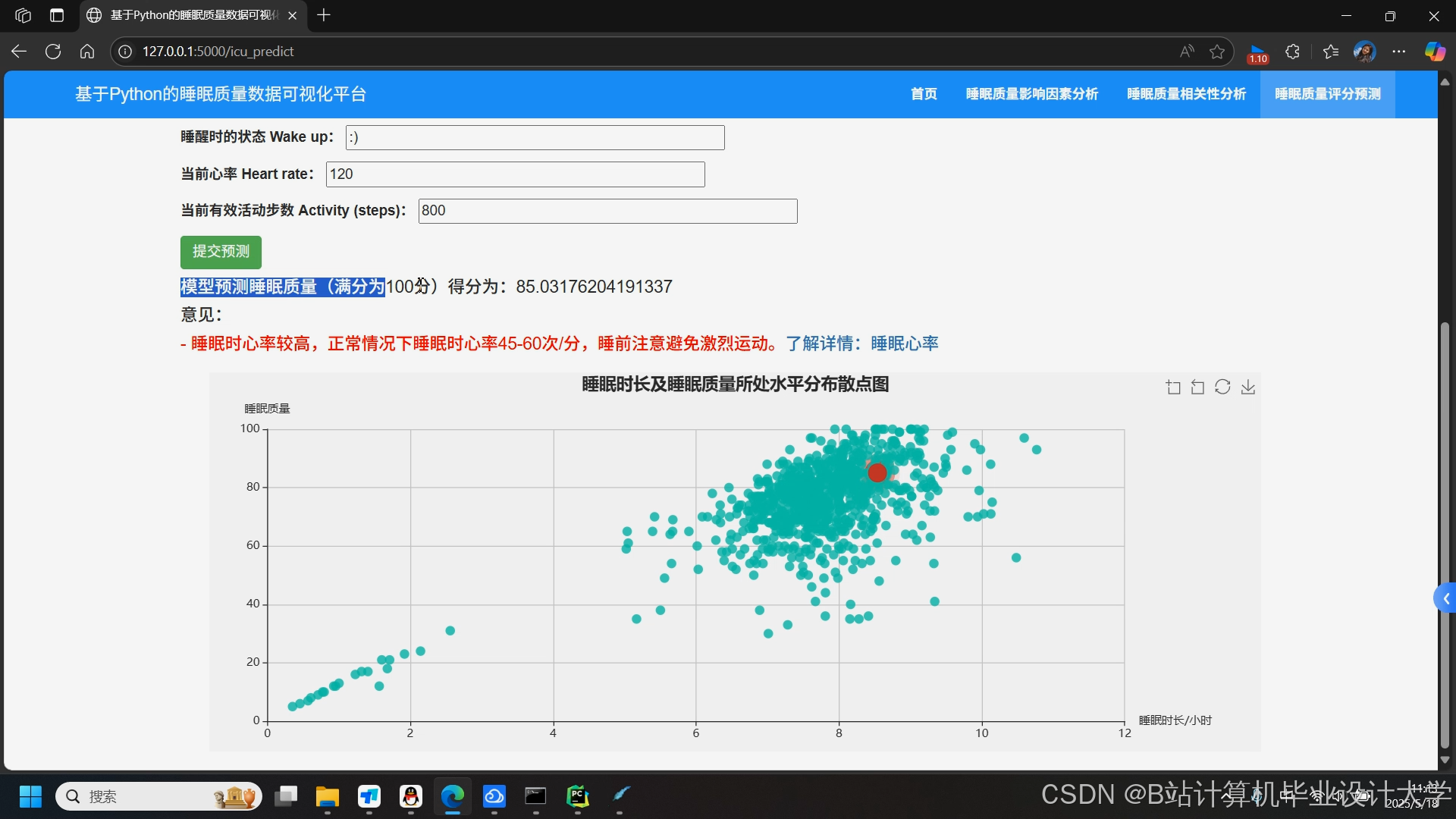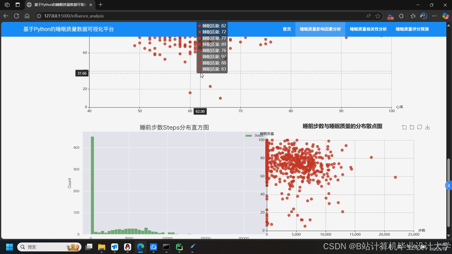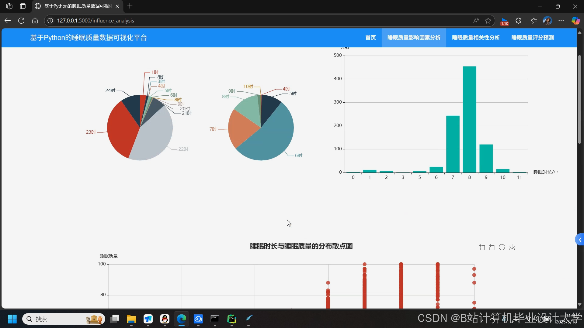 Hadoop和Spark作为大数据处理领域的两大主流框架,具有强大的数据处理能力和可扩展性,能够处理海量的睡眠数据。同时,可视化技术可以将复杂的睡眠数据以直观的图形和图表形式展示出来,帮助用户更好地理解睡眠质量的状况和变化趋势。因此,基于Hadoop+Spark进行睡眠质量分析预测,并实现睡眠质量可视化具有重要的研究价值。
